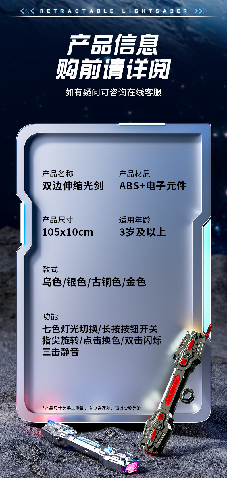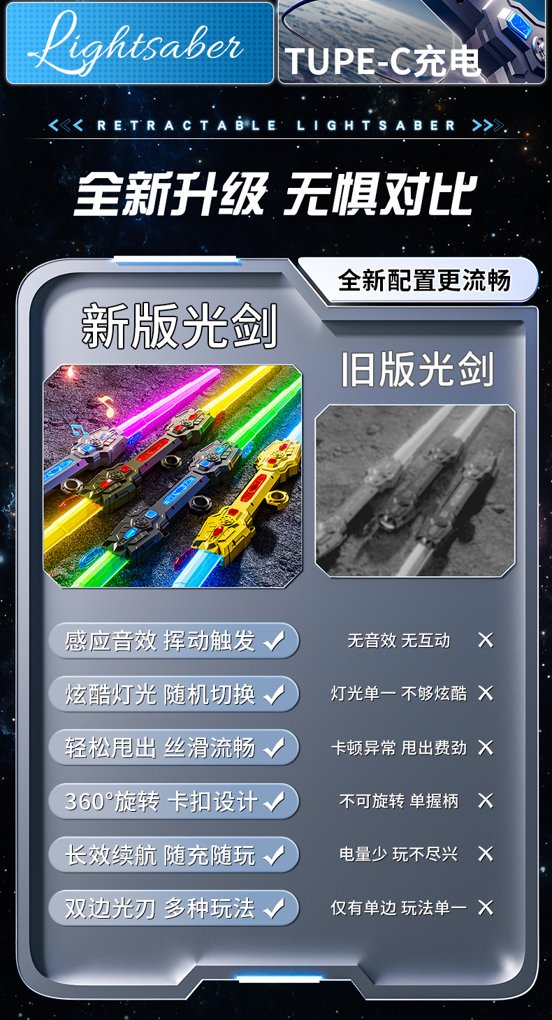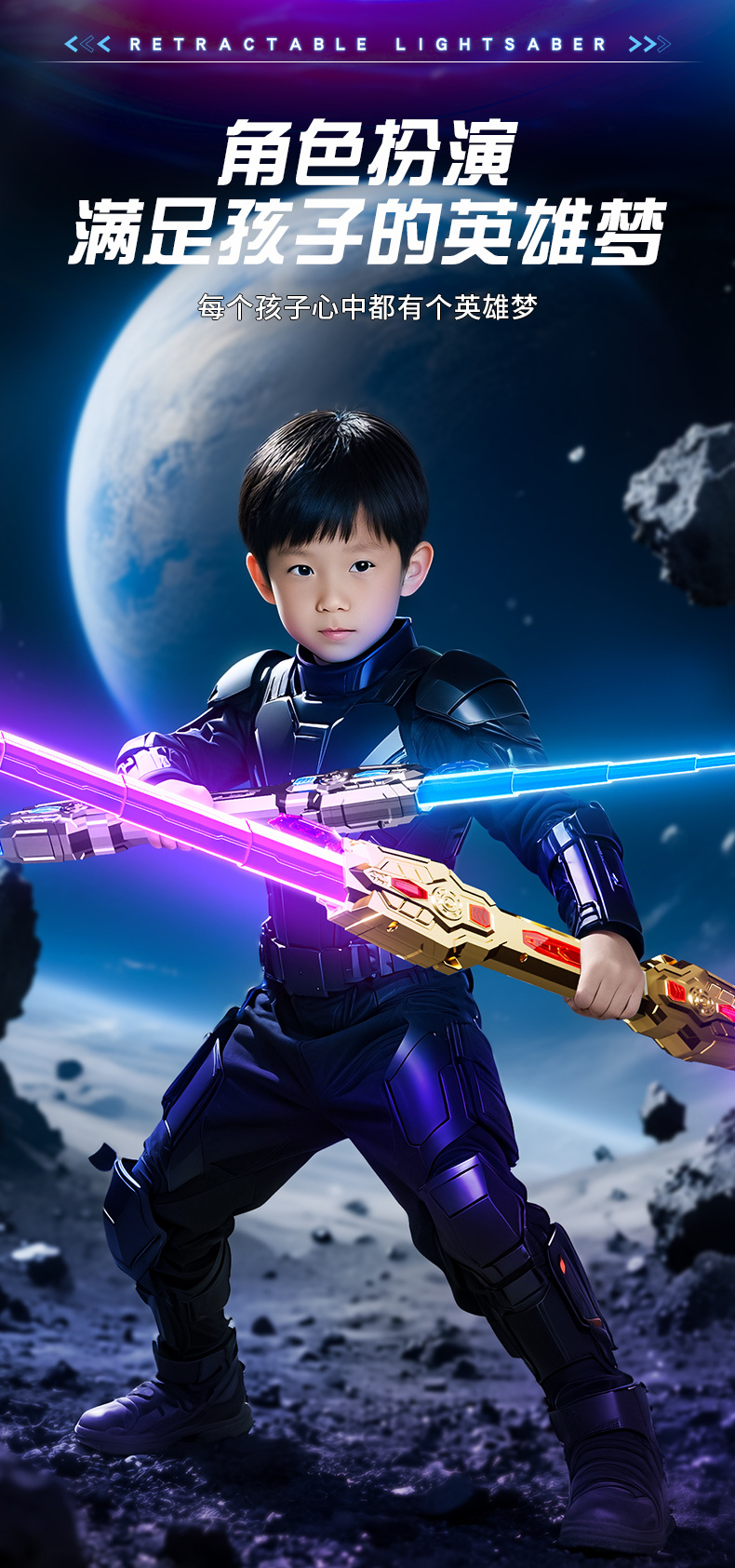 跨境儿童炫酷可伸缩光剑星大战男孩二合一网红7彩发光荧光棒玩具