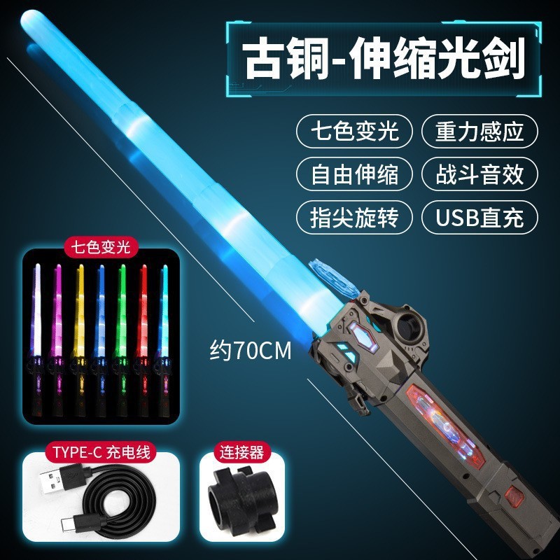 抖音网红对插双刃光剑伸缩旋转激光剑男孩发光宝剑儿童玩具批发