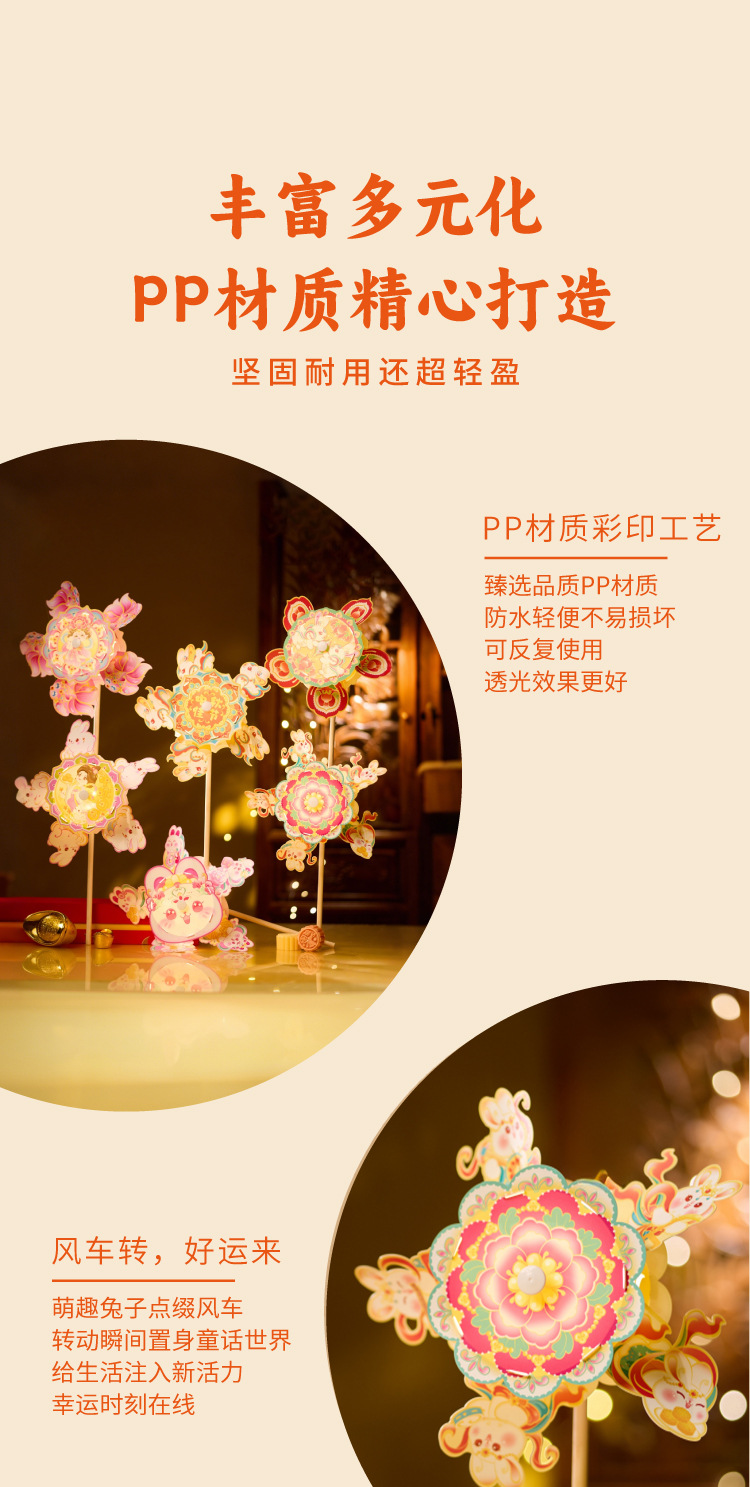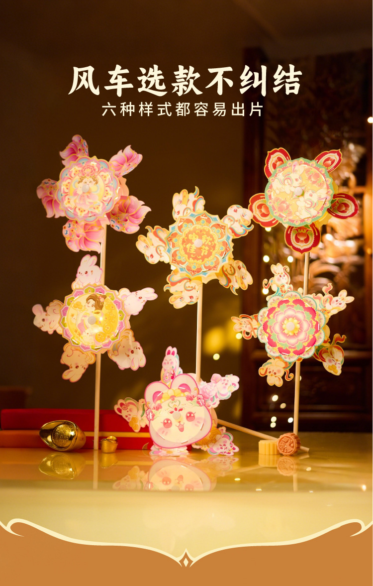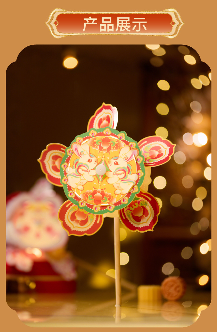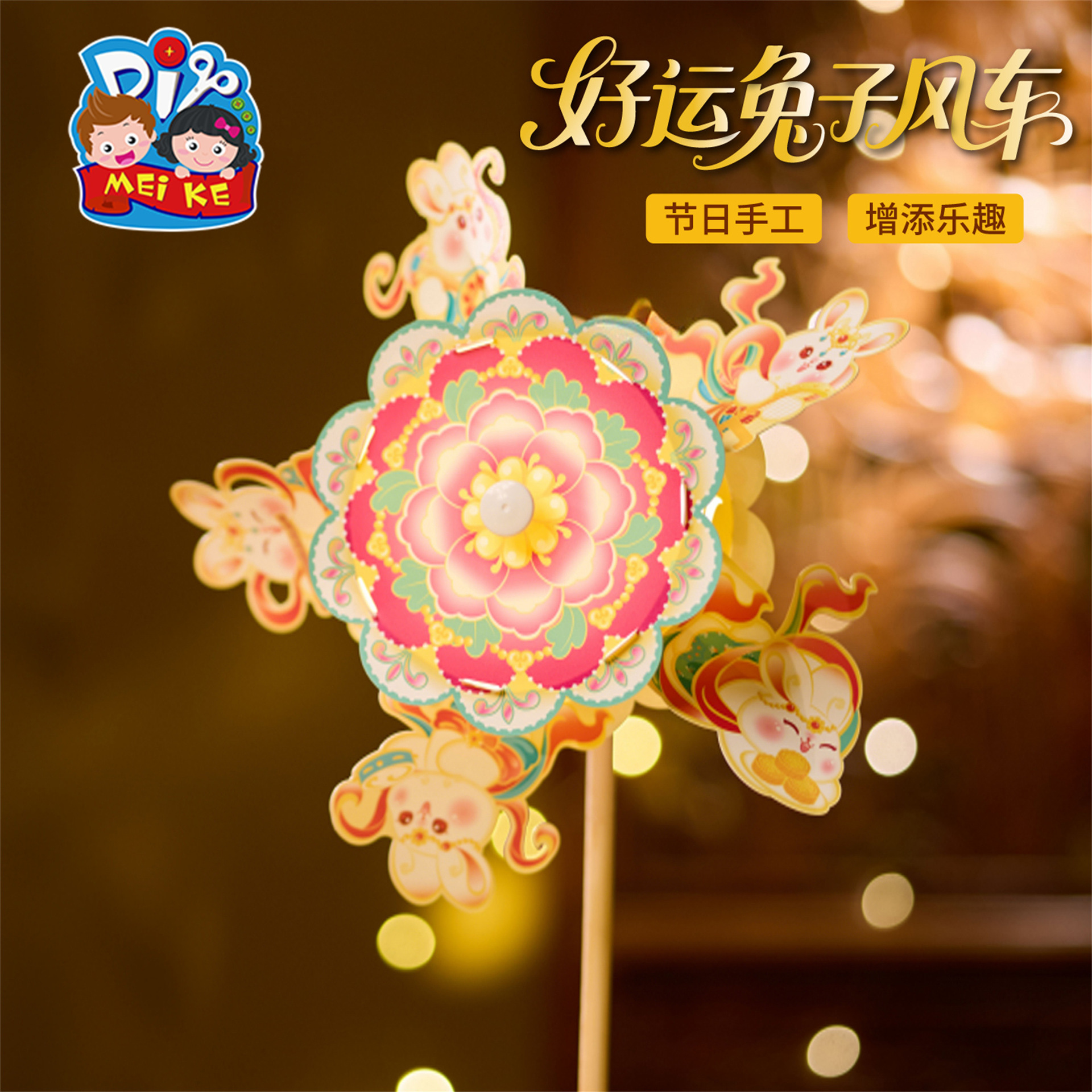 马年新春好运兔子风车diy材料包旋转国潮佳节儿童发光玉兔风车