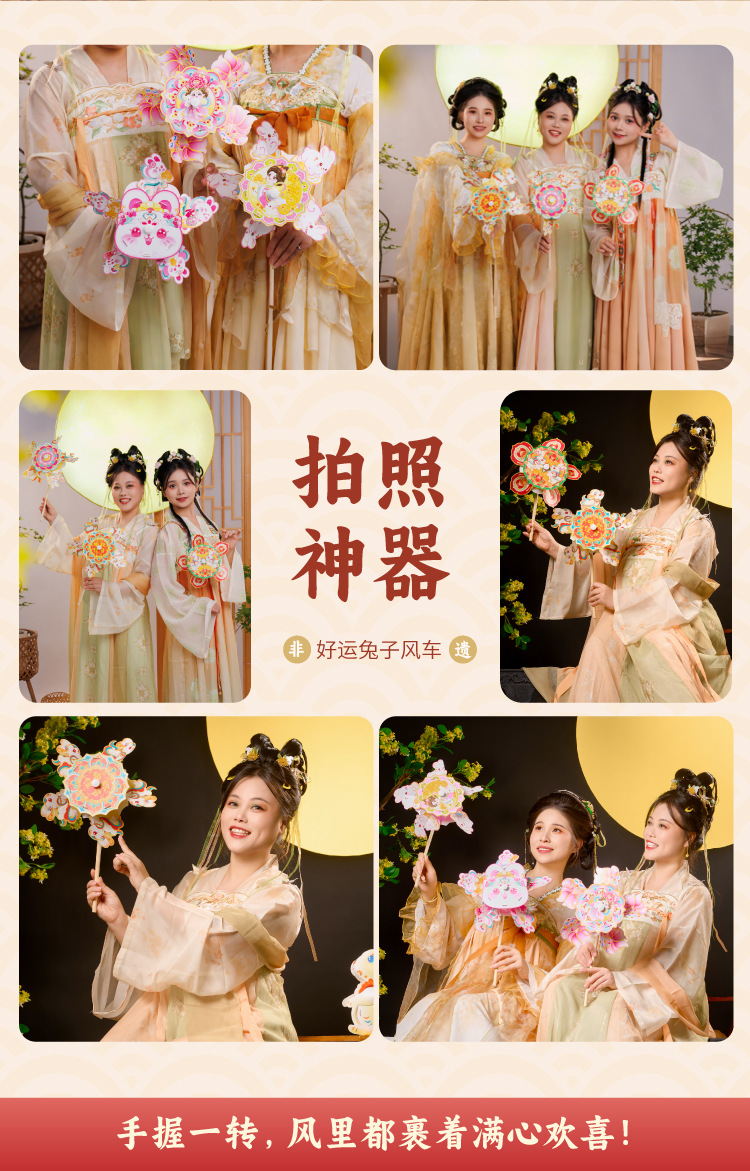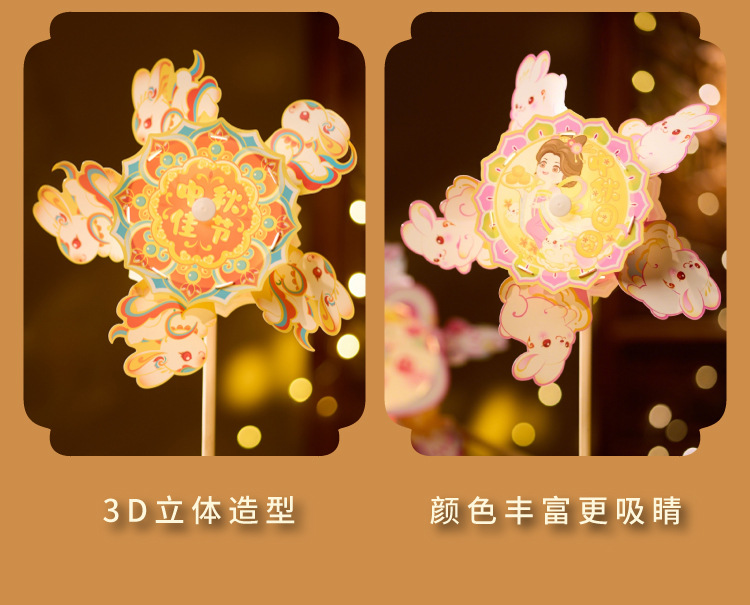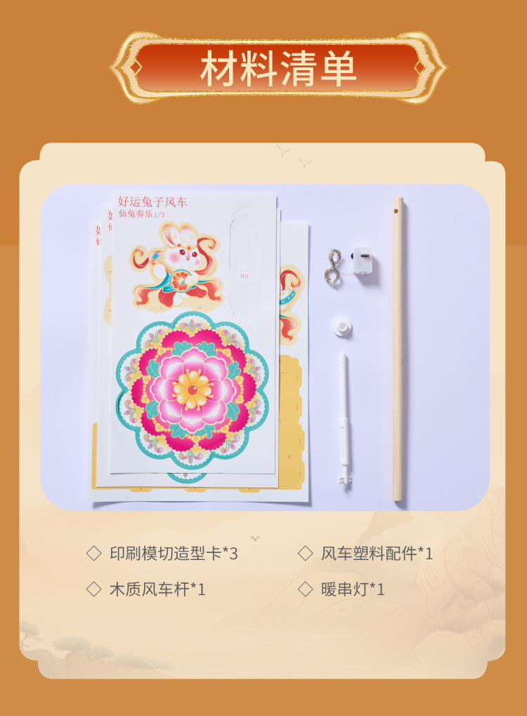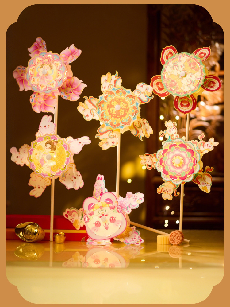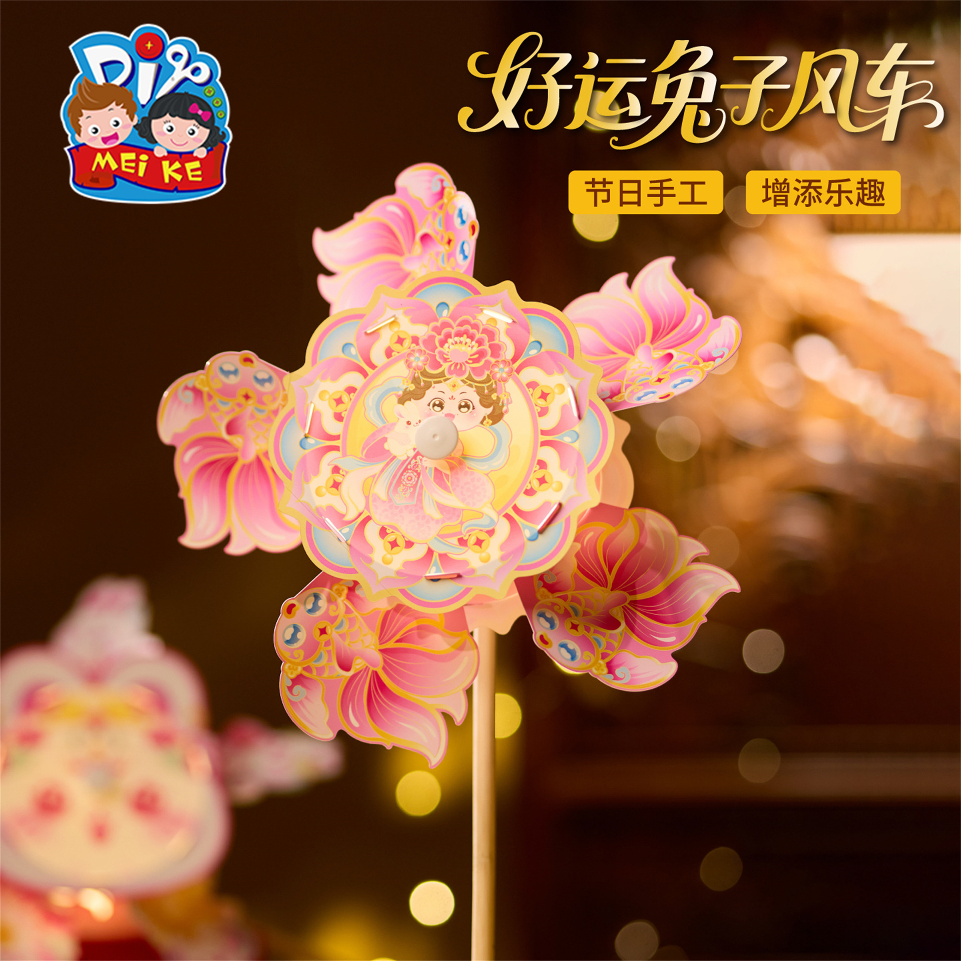马年新春好运兔子风车diy材料包旋转国潮佳节儿童发光玉兔风车