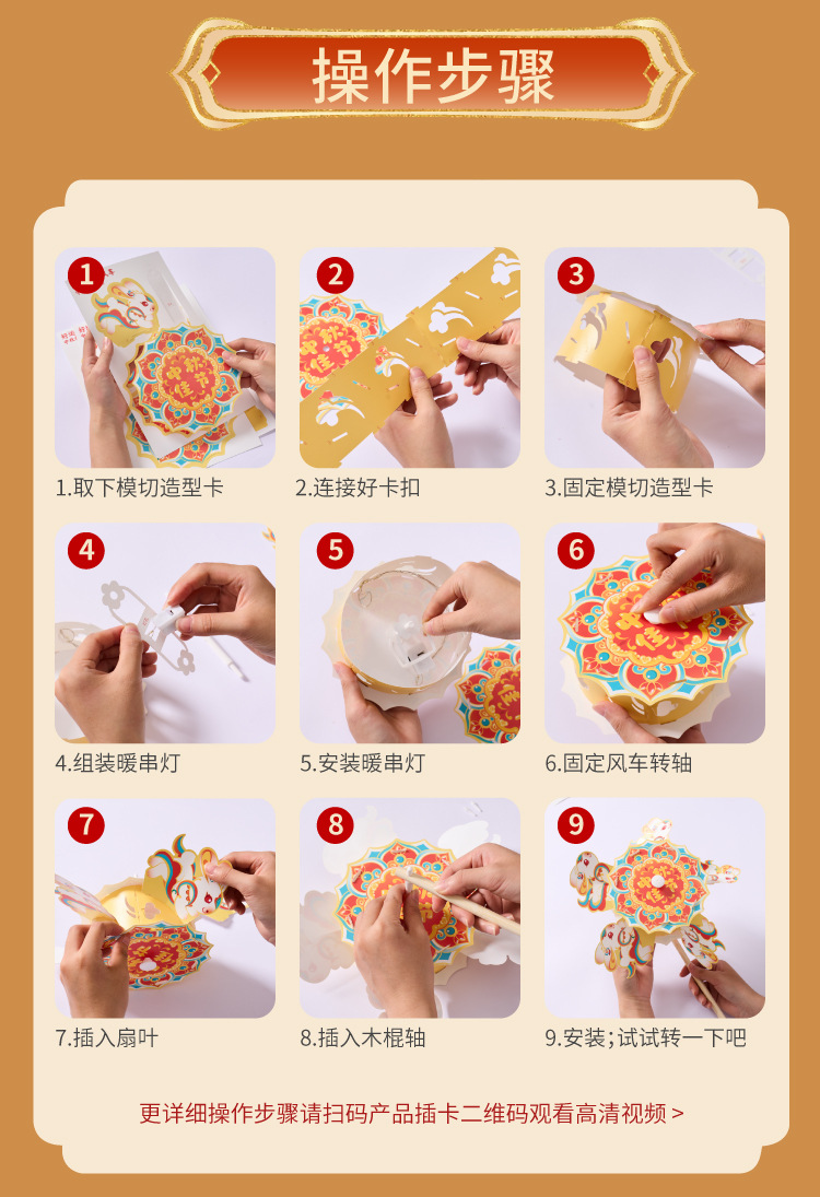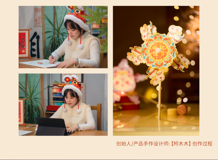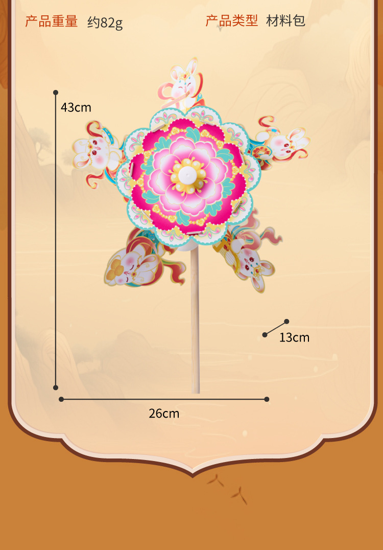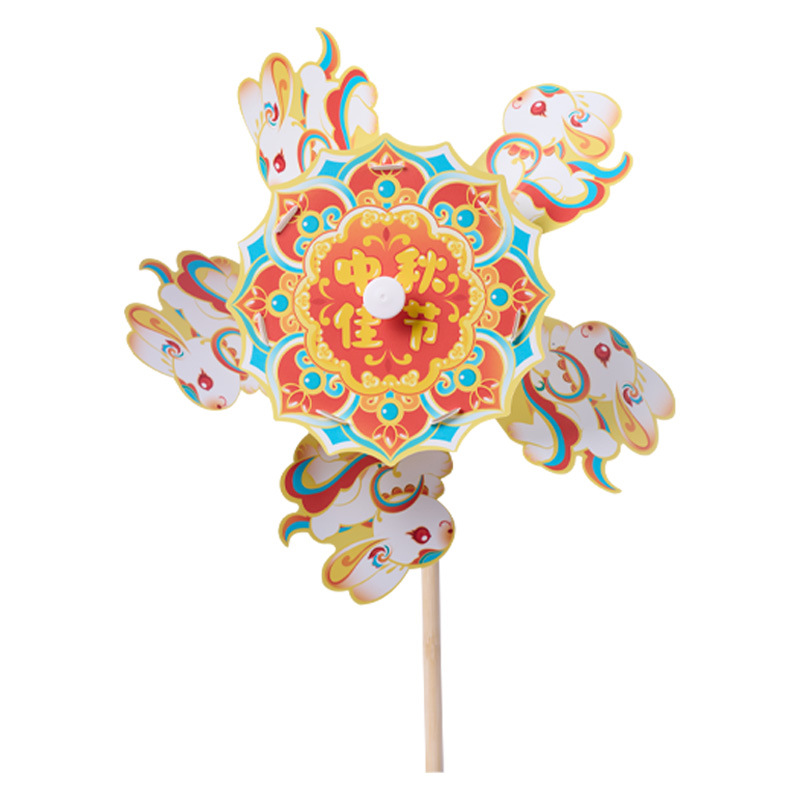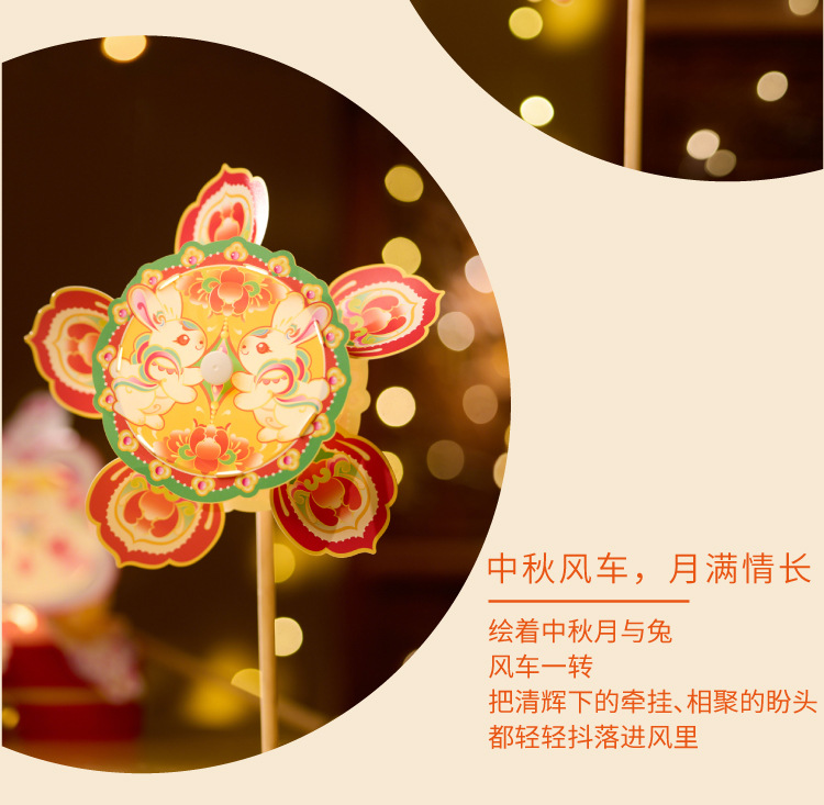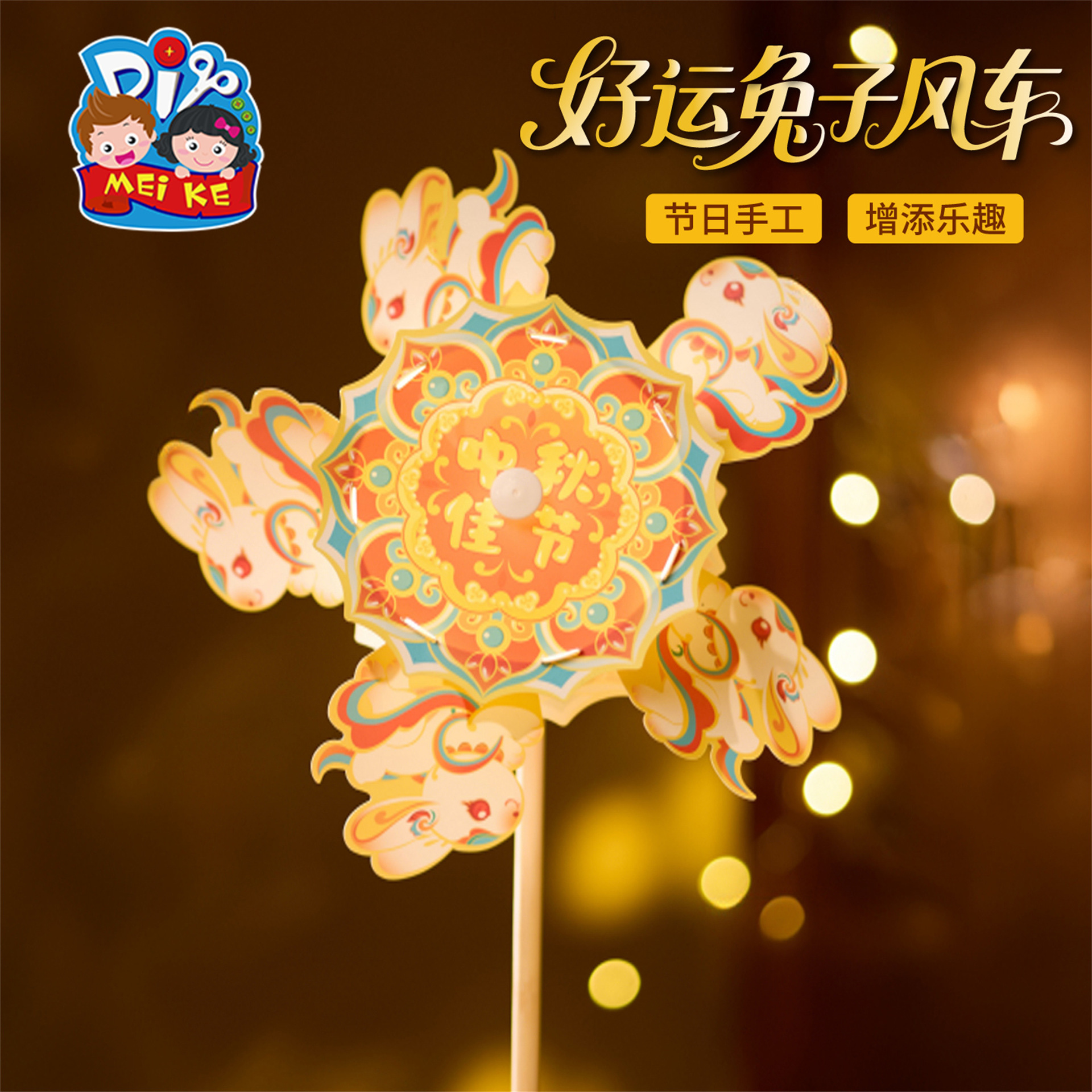马年新春好运兔子风车diy材料包旋转国潮佳节儿童发光玉兔风车