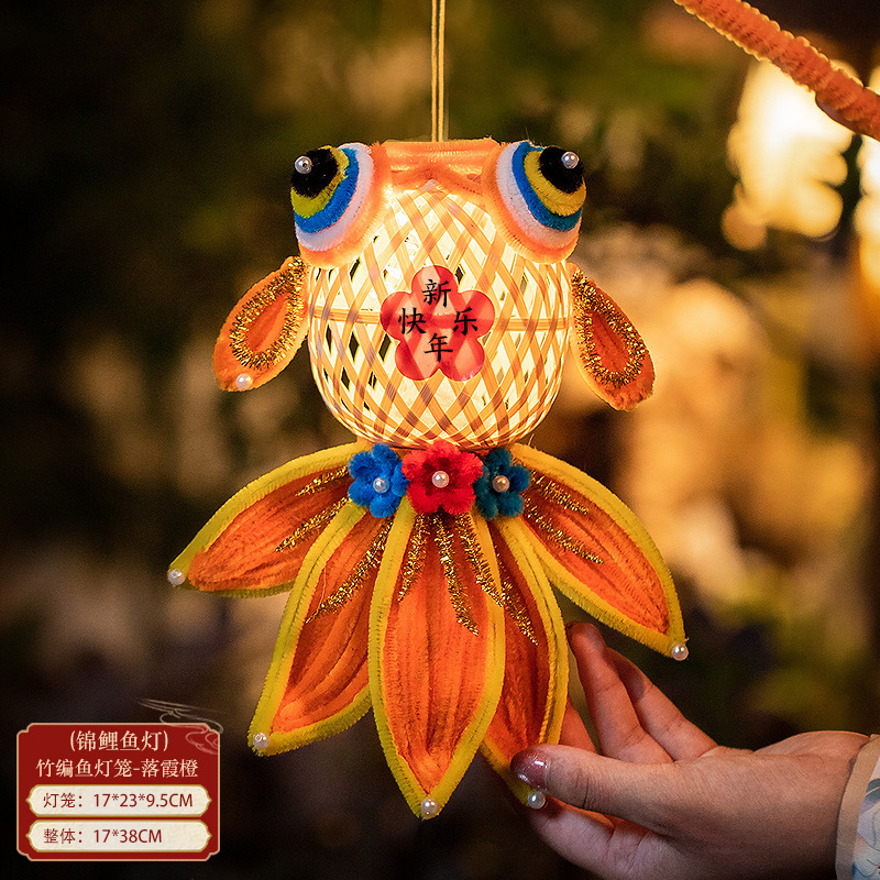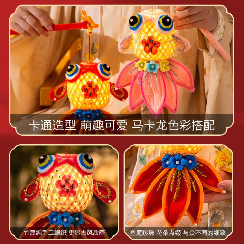 2026马年新年竹编锦鲤灯笼儿童手工diy材料扭扭棒手提发光金鱼灯