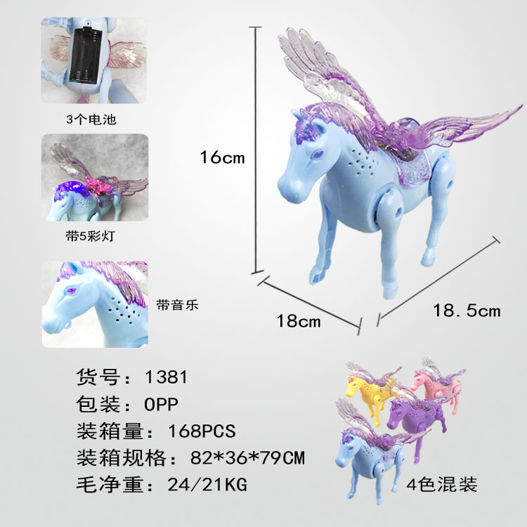 电动发光天使马 2026马年新款牵绳小马卡通动物儿童益智玩具批发