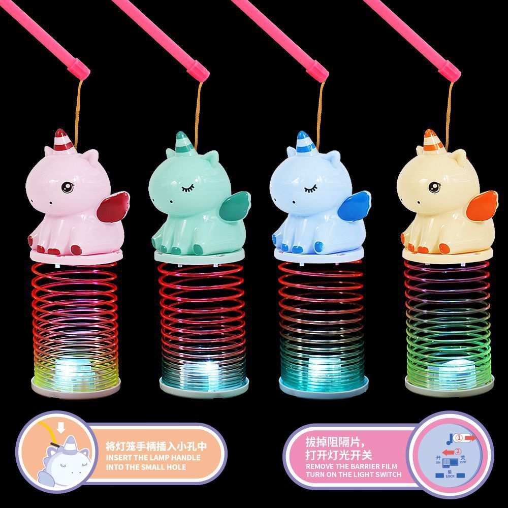 马年新款彩虹儿童玩具夜市卡通马手提灯笼弹簧发光彩虹桥元旦礼物