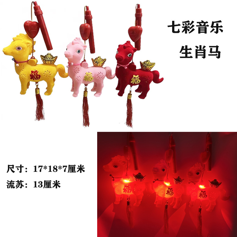 2026马年元宵卡通灯笼儿童发光玩具手提马七彩音乐灯笼玩具批发