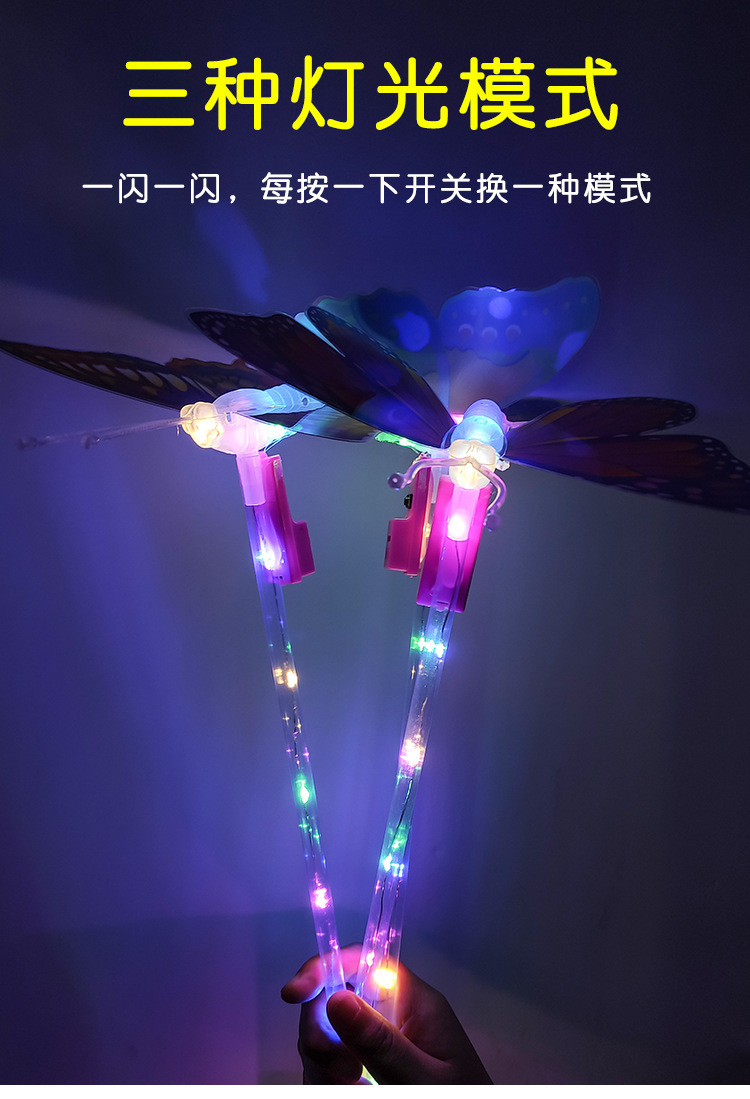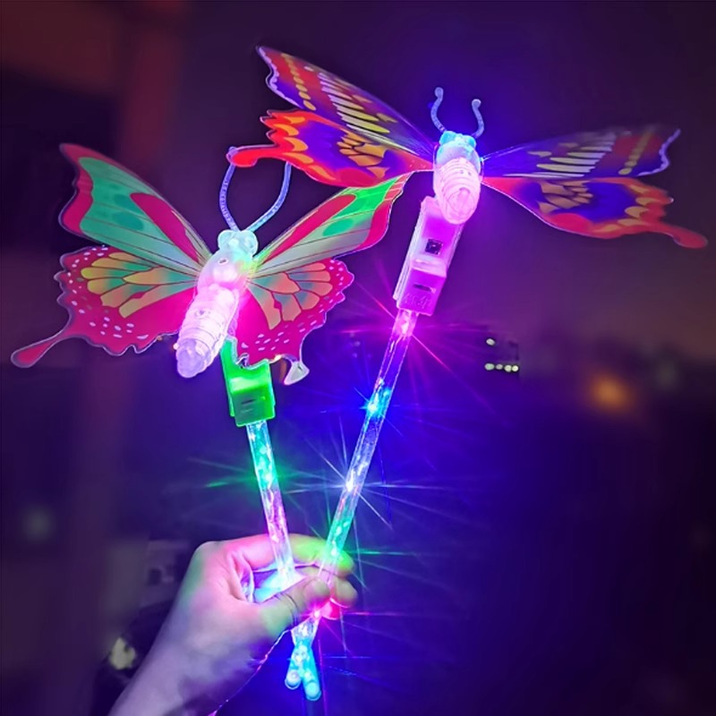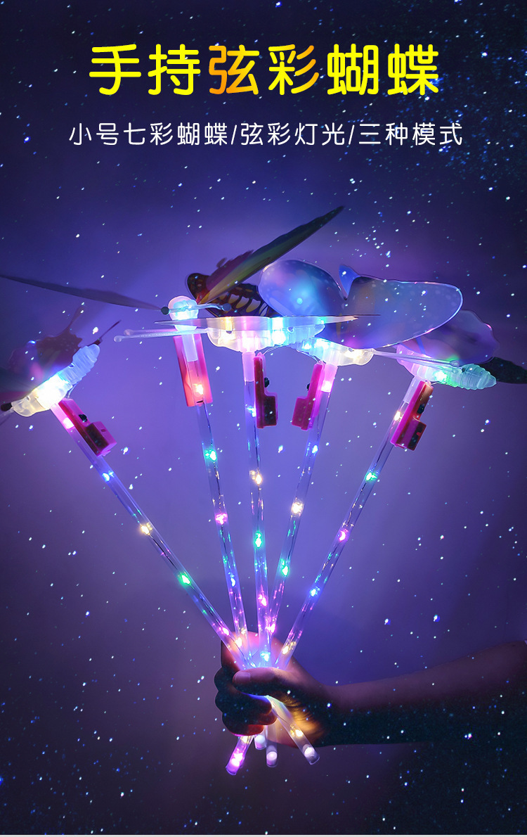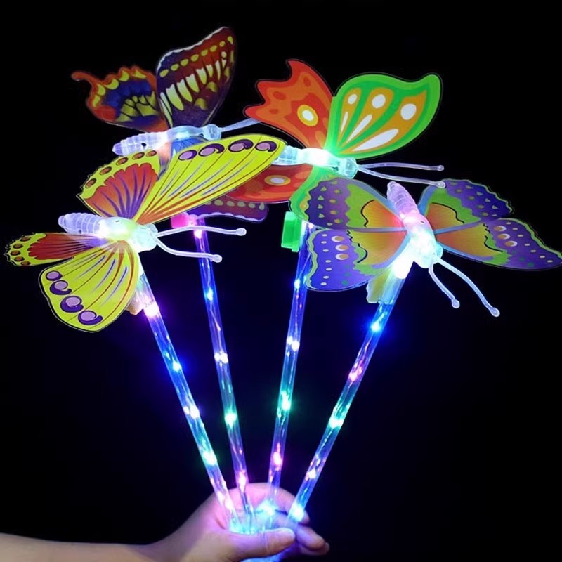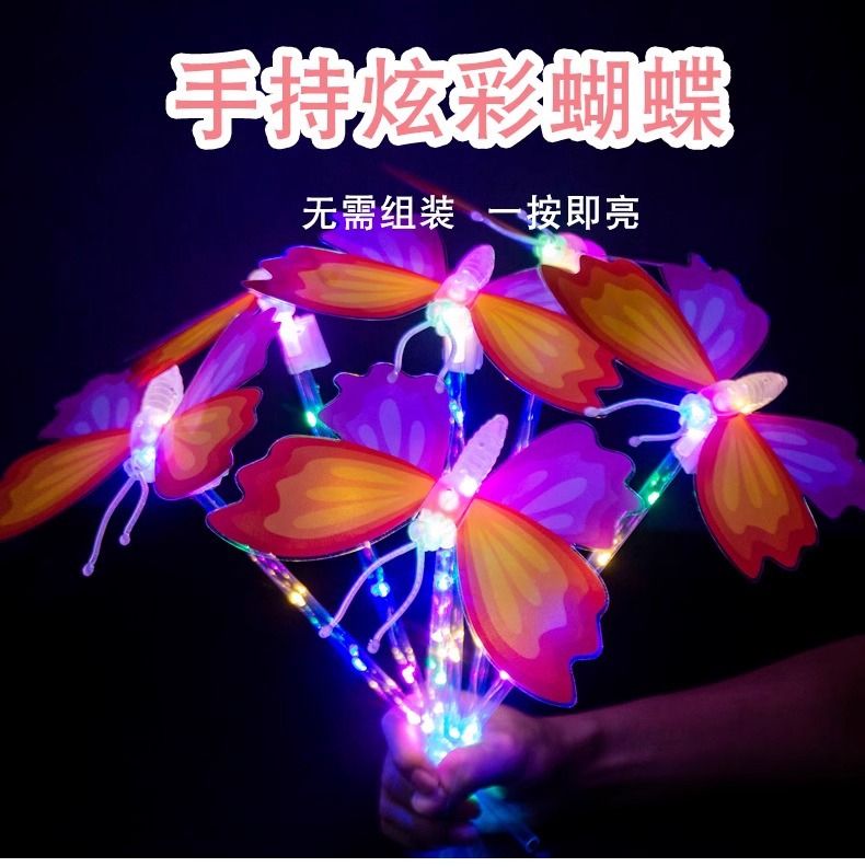 网红夜市玩具手持蝴蝶棒波波球闪光棒仙女魔法棒蝴蝶发光玩具地摊