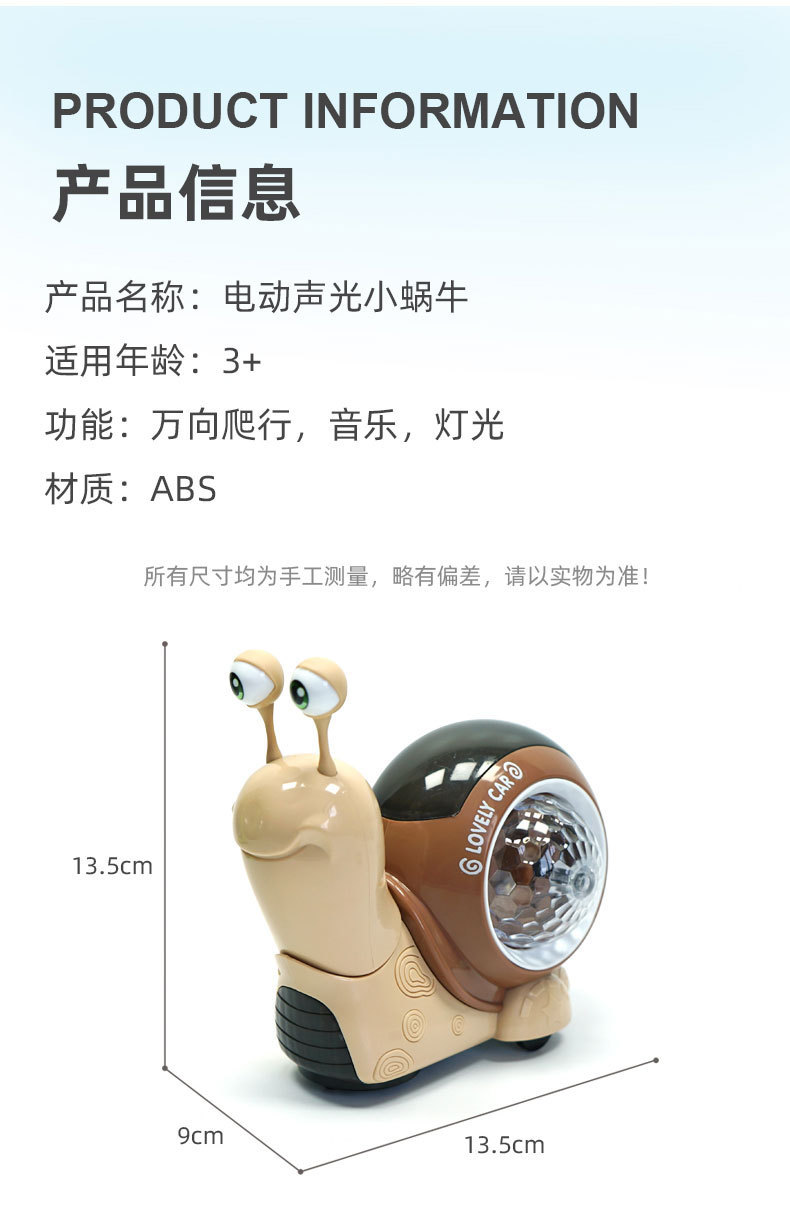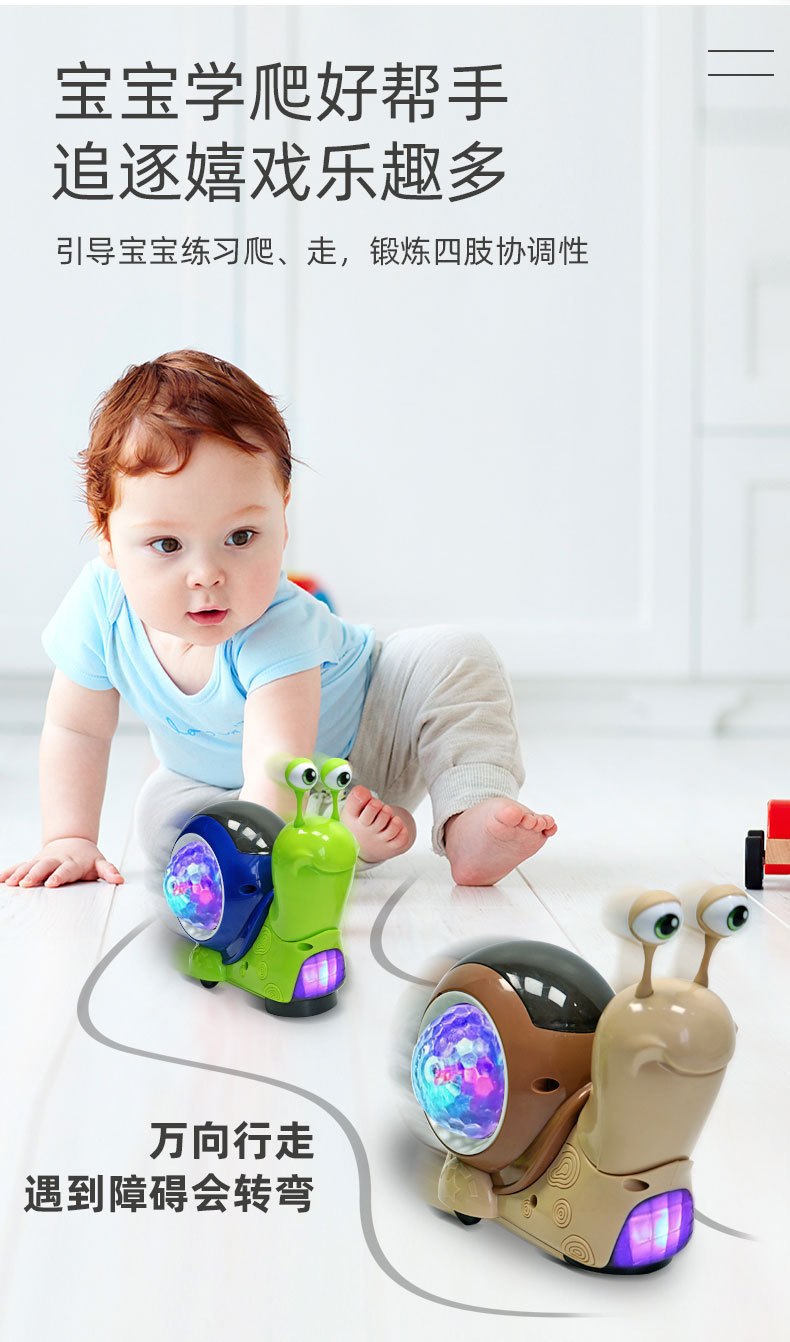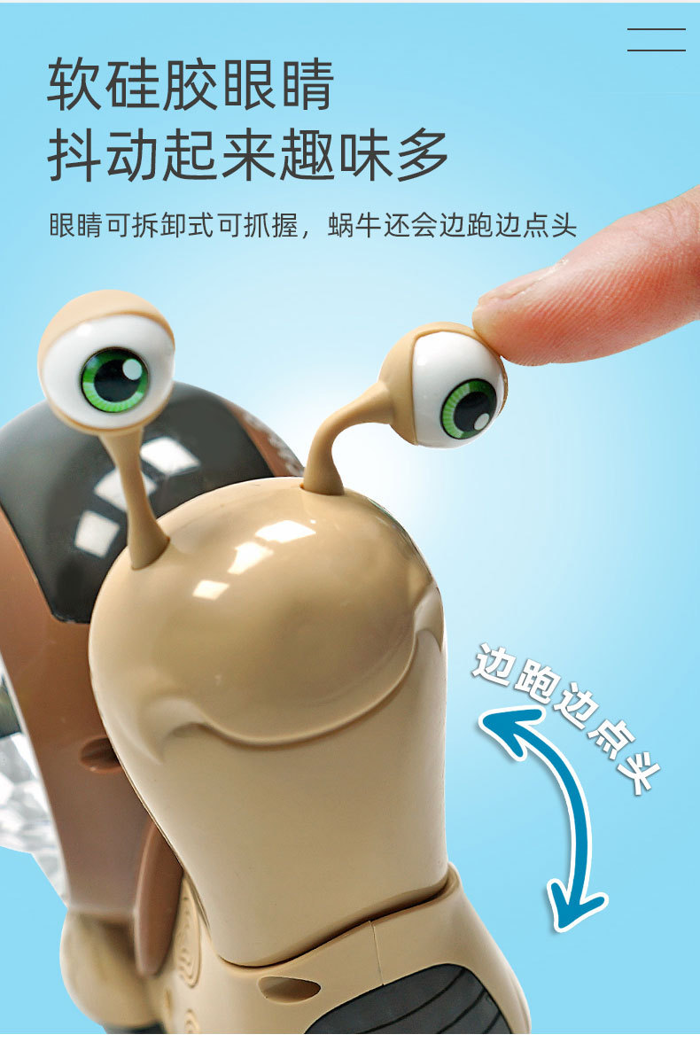 抖音网红会跑动点头的蜗牛玩具会音乐发光电动男女孩儿童早教益智