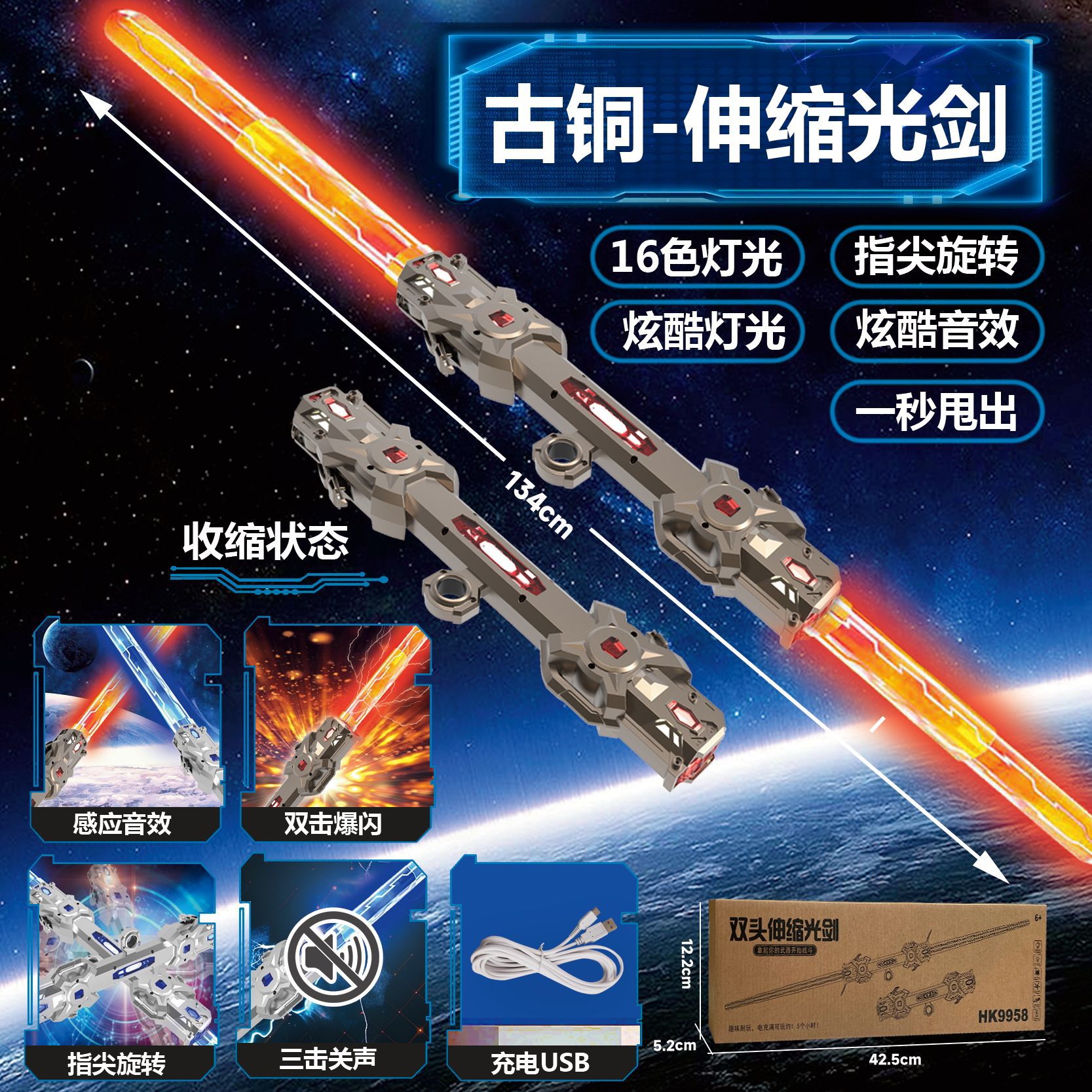 伸缩激光剑儿童玩具发光剑网红同款激光剑双刃伸缩发光刀可收缩