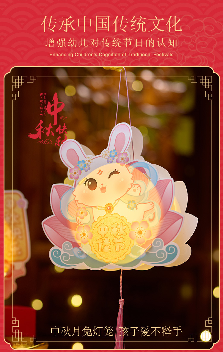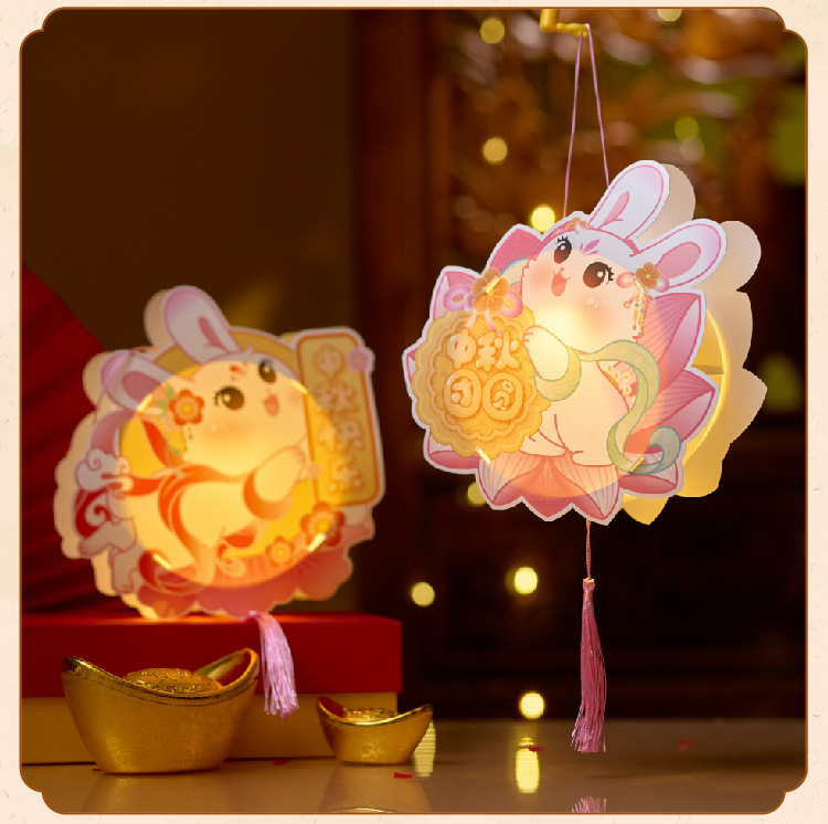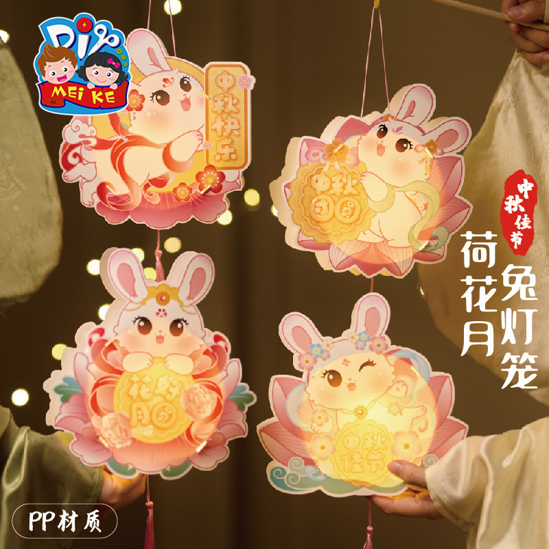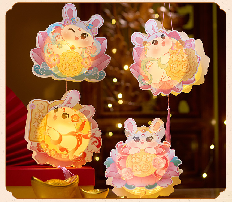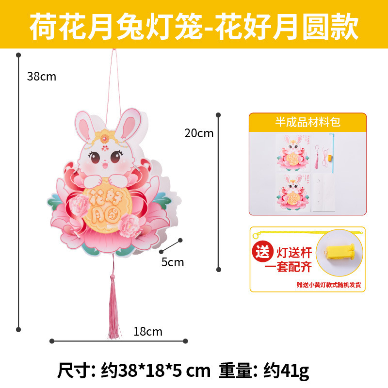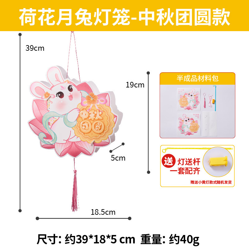 马年新款荷花月兔灯笼手工diy材料儿童制作玩具手提发光灯笼