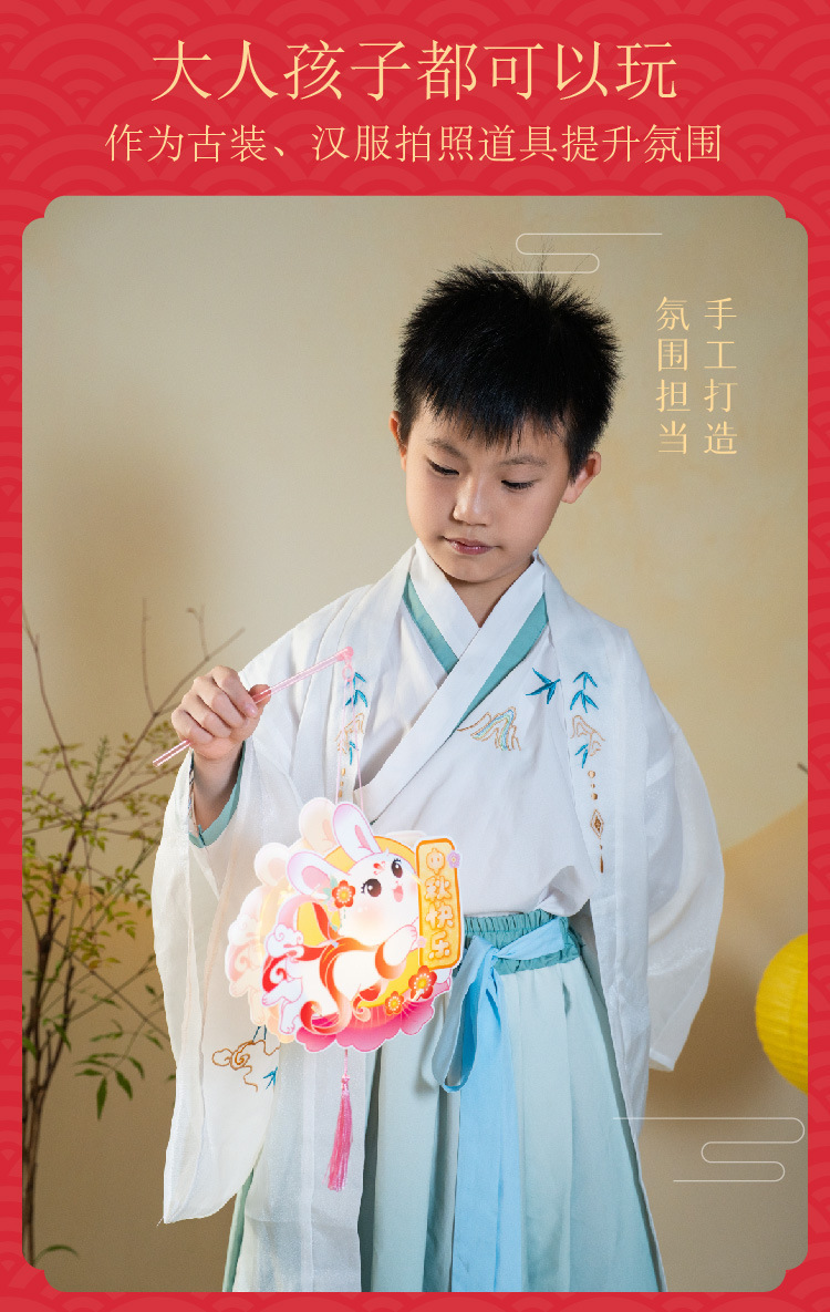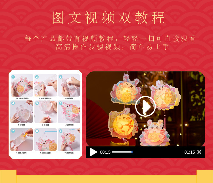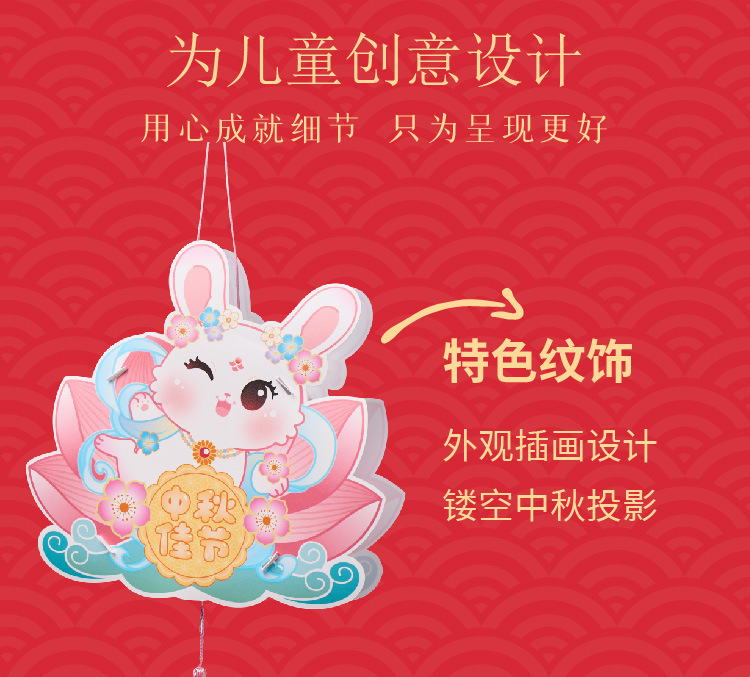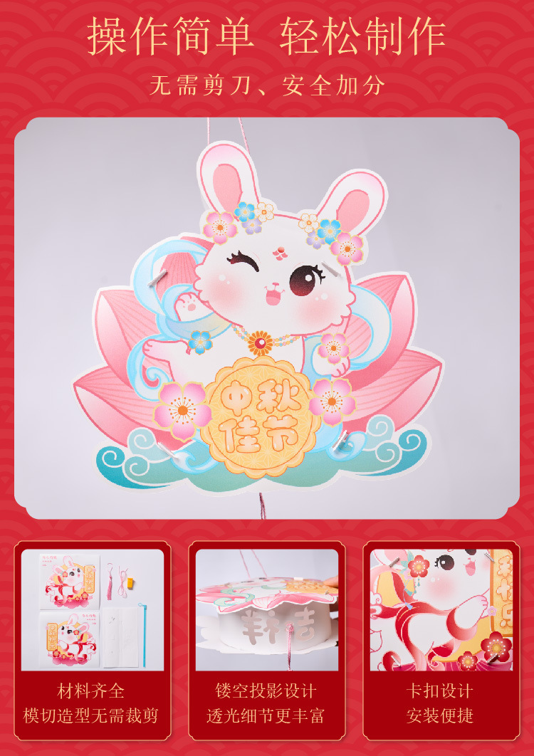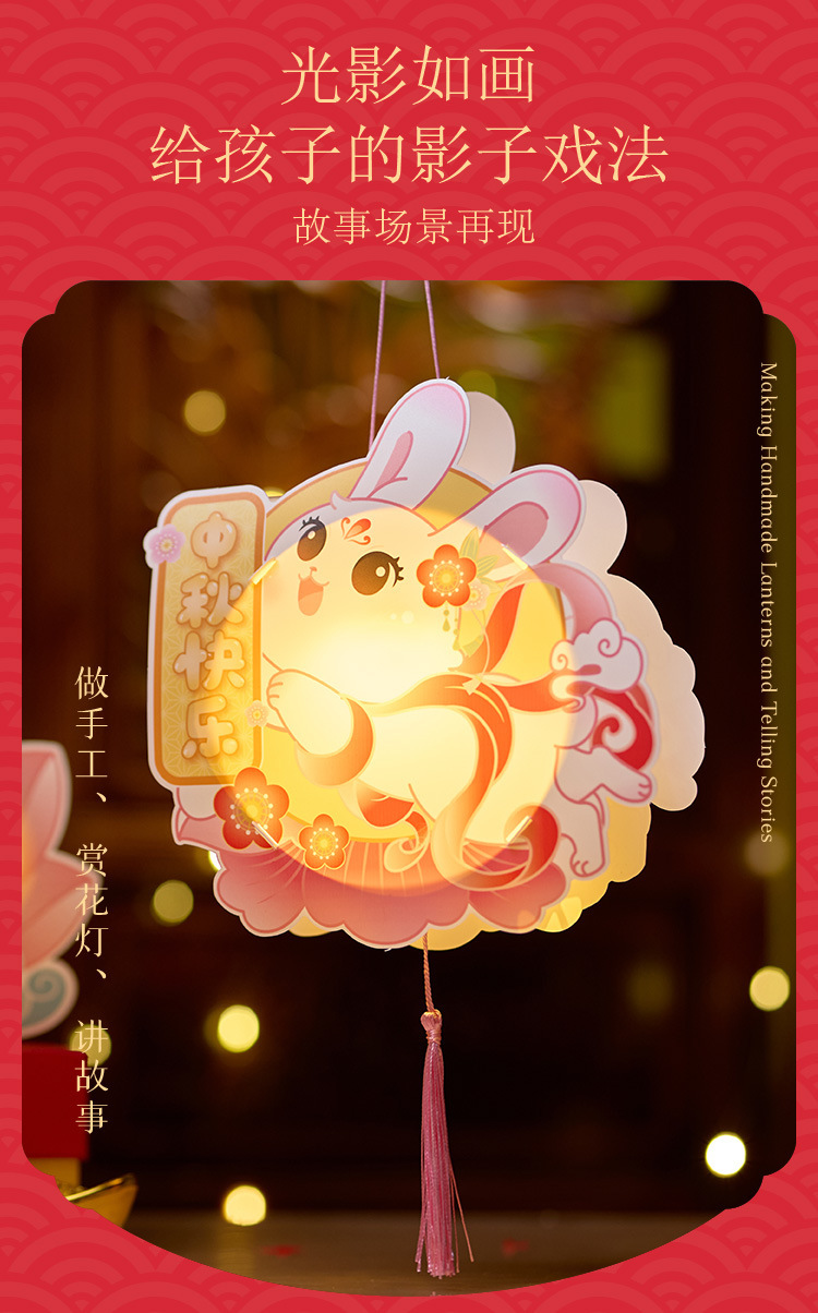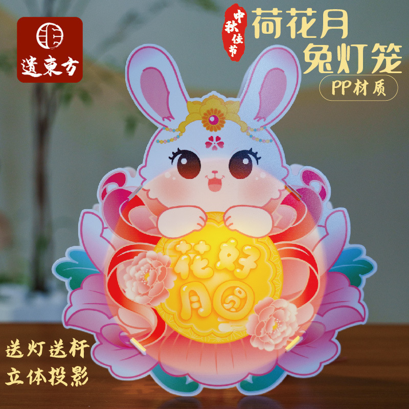 马年新款荷花月兔灯笼手工diy材料儿童制作玩具手提发光灯笼