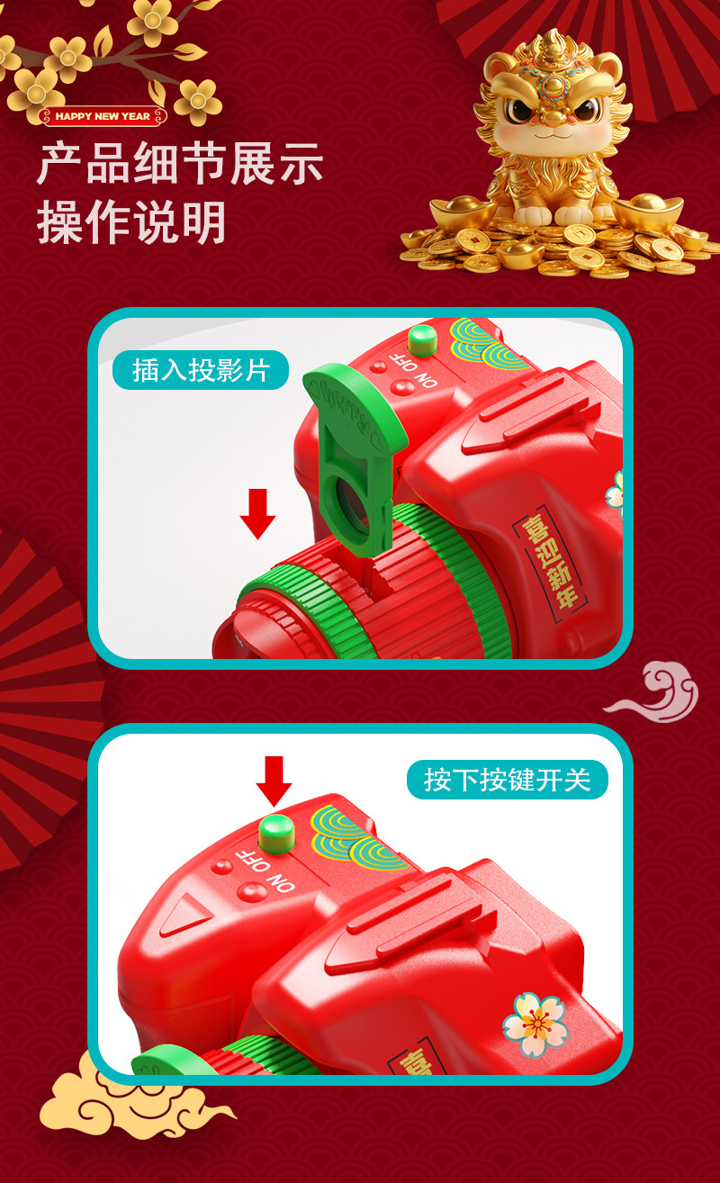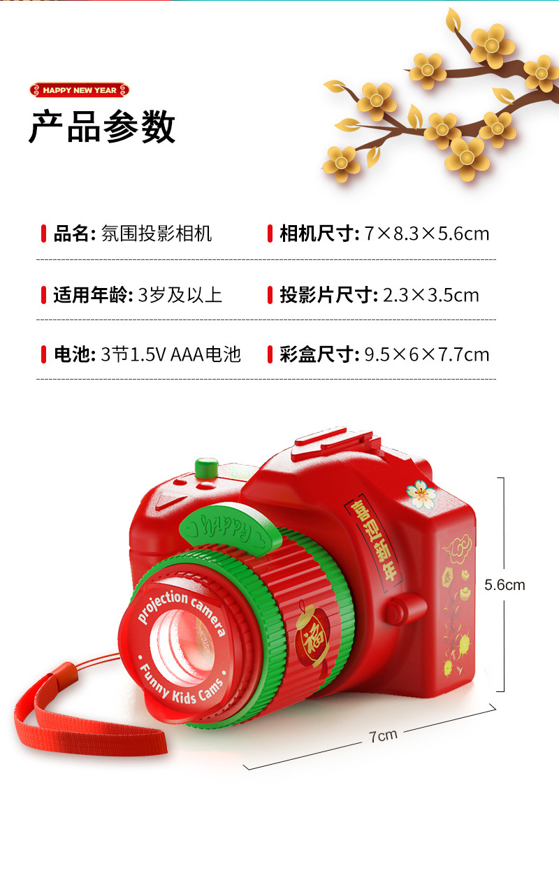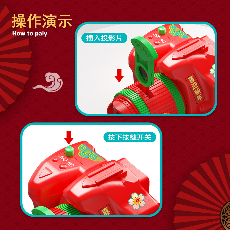 抖音爆款马年相机投影灯手电筒发光圣诞相机早教儿童玩具批发地摊