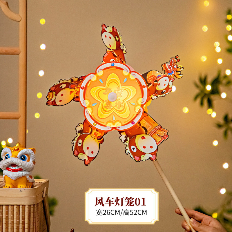 2026新年风车灯笼儿童手提古风花灯手工玩具工艺品春节马年装饰
