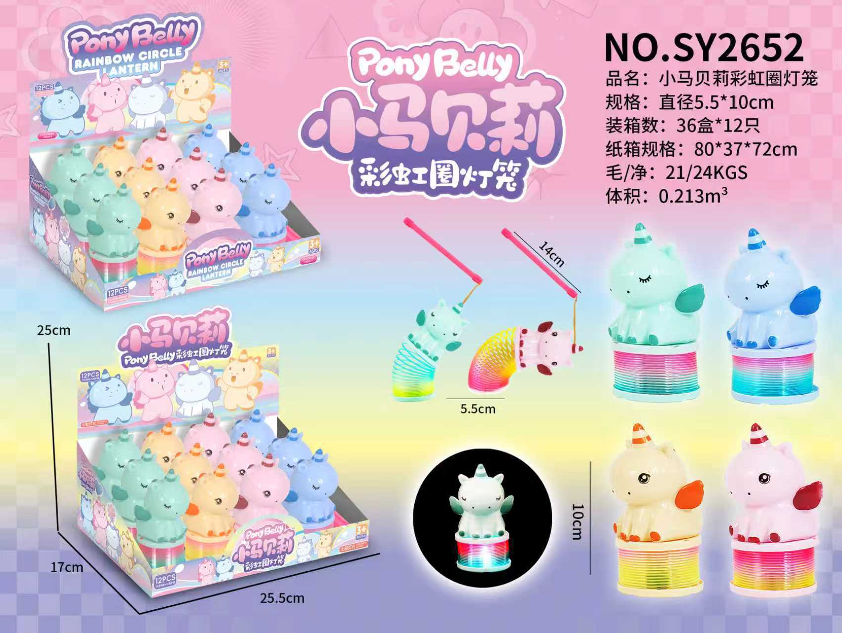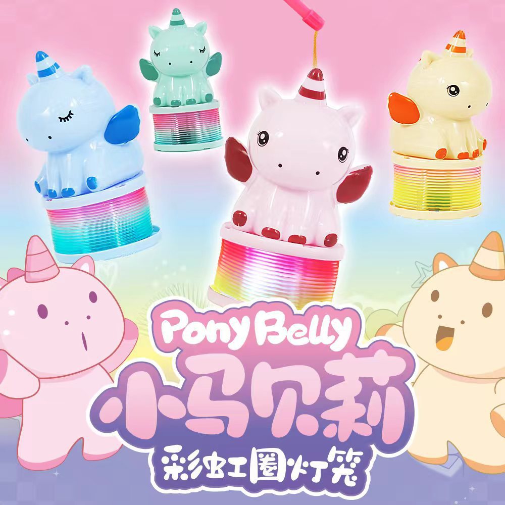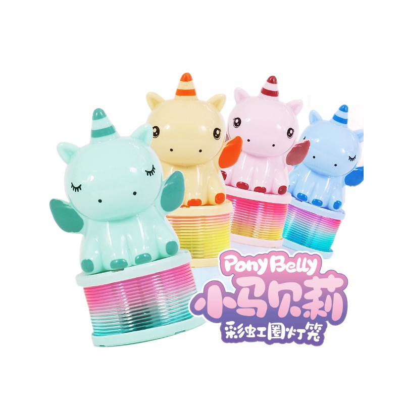 马年彩虹圈灯笼新年元宵卡通小马手提发光弹簧圈七彩闪光玩具批发