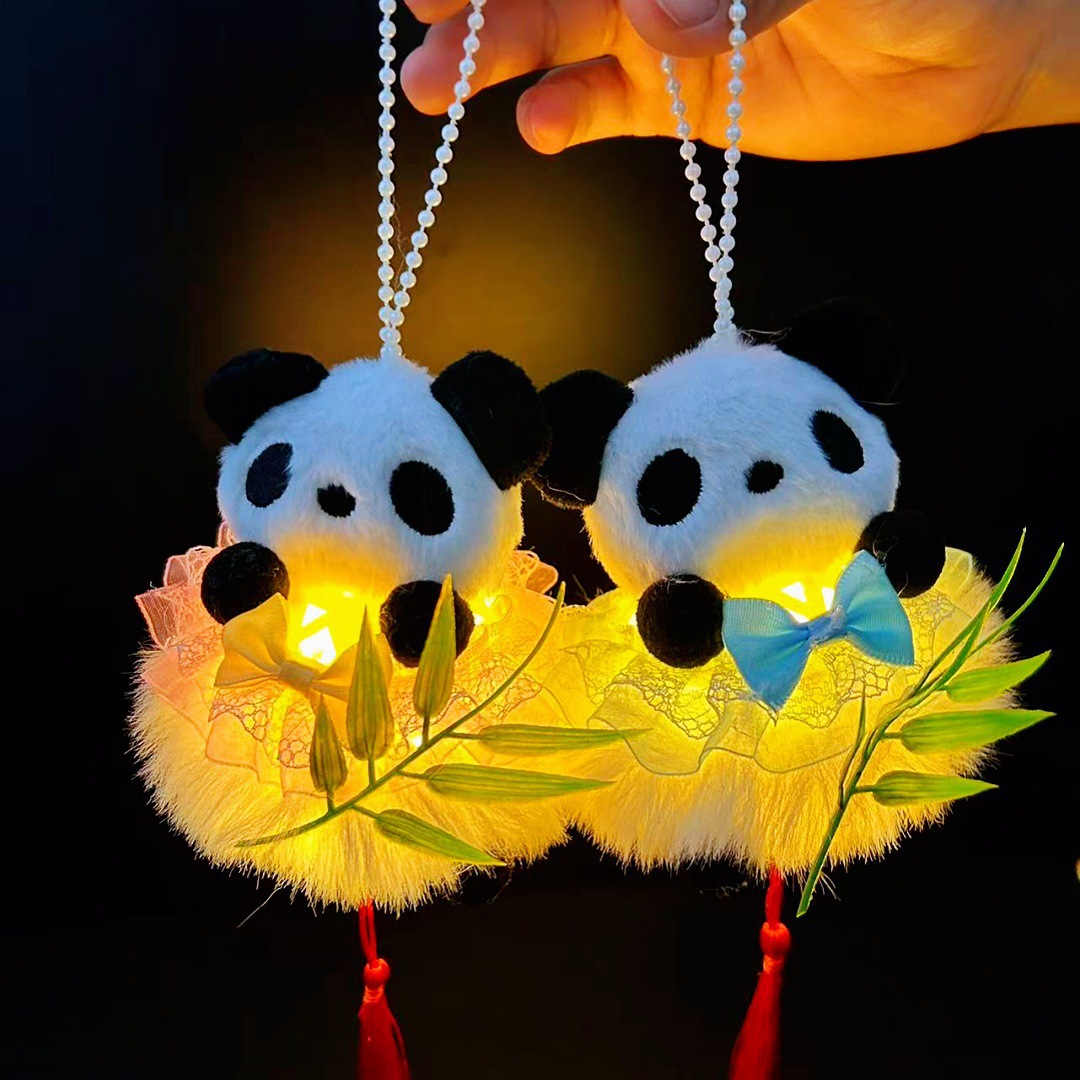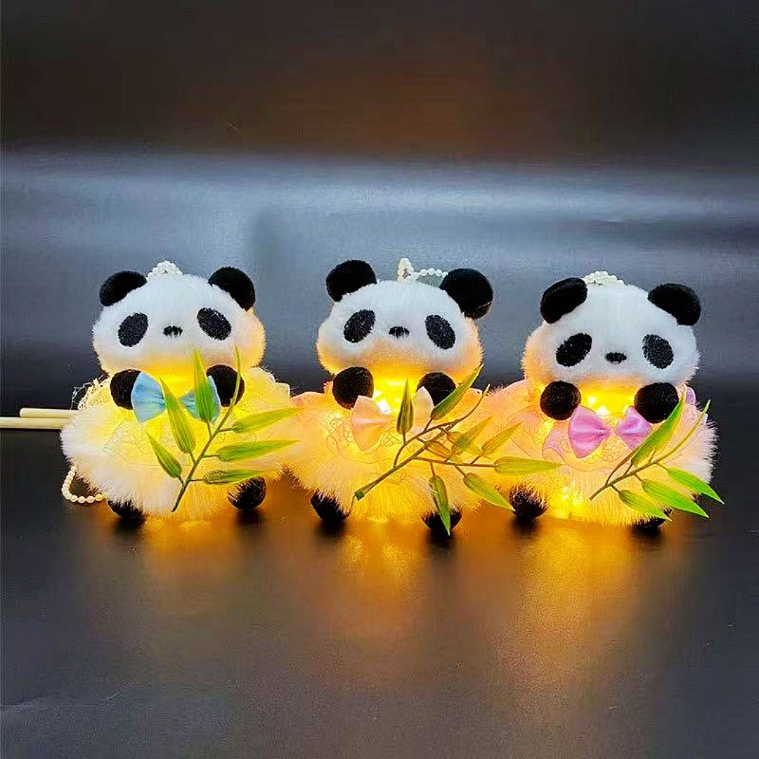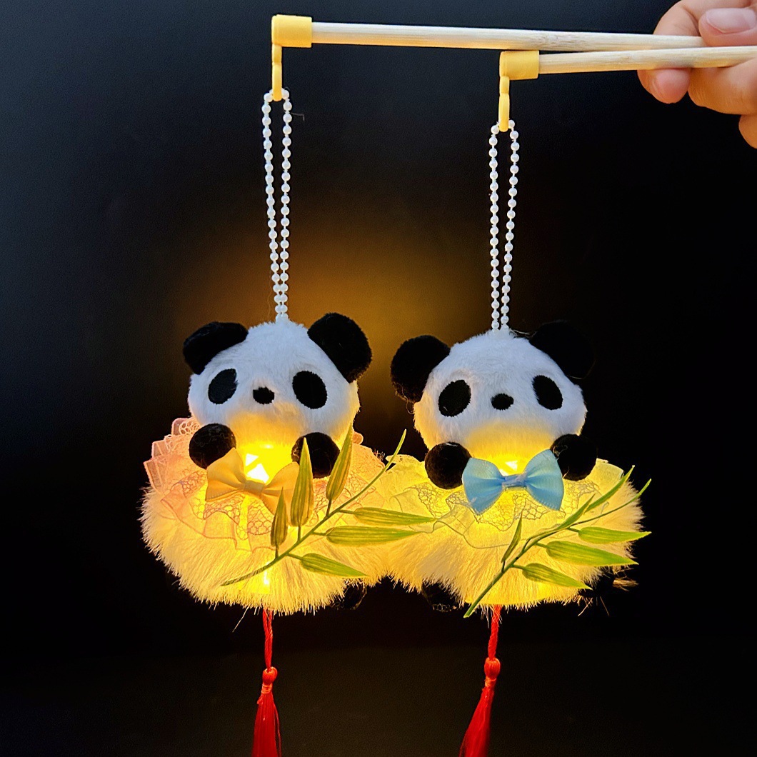 2026马年新款熊猫抱竹仿竹编中秋灯笼夜市地摊儿童手提发光玩具