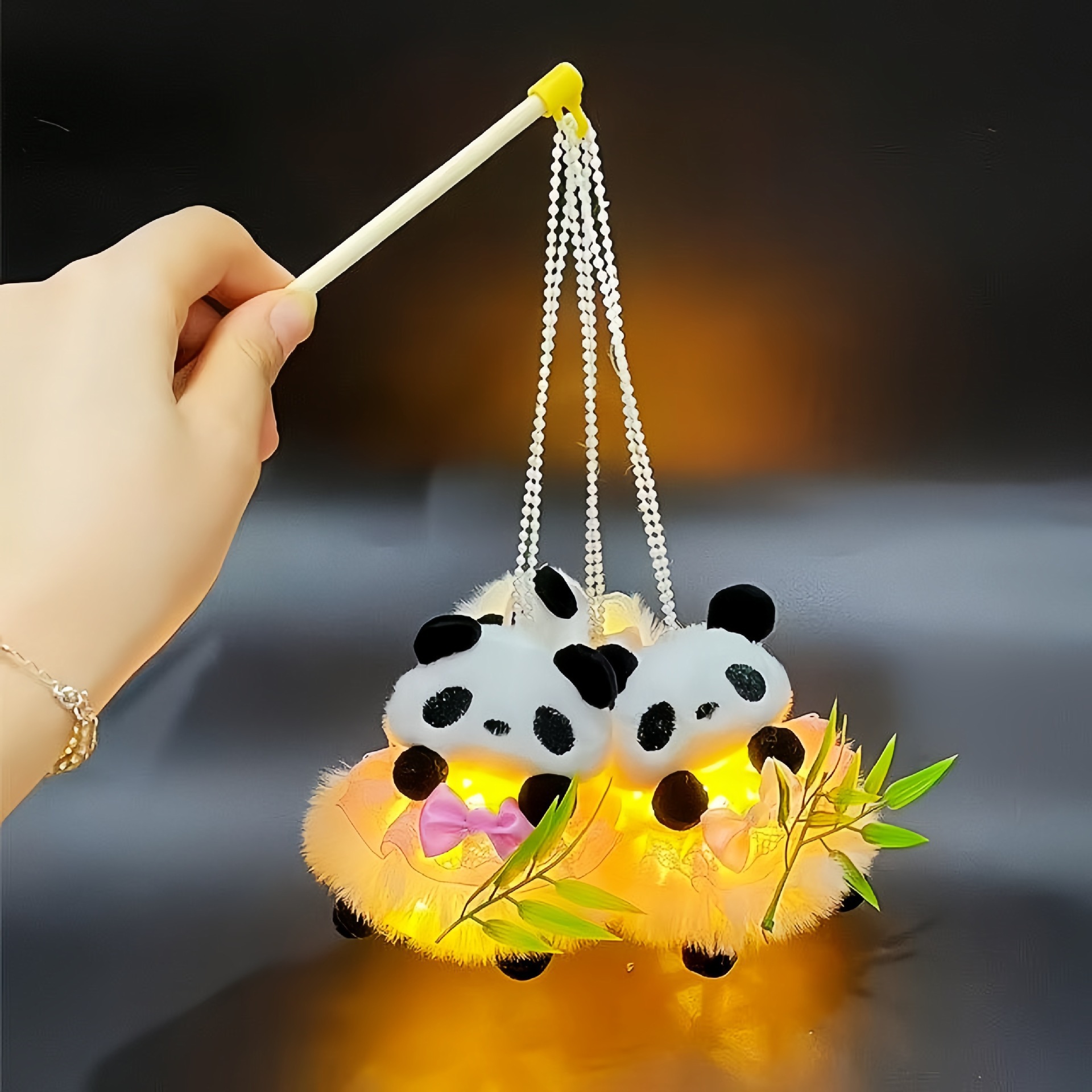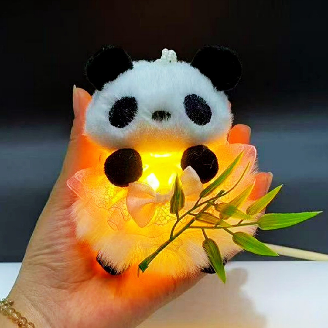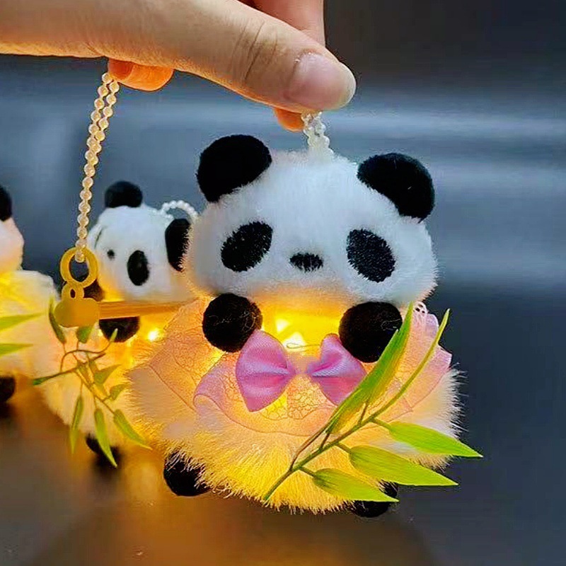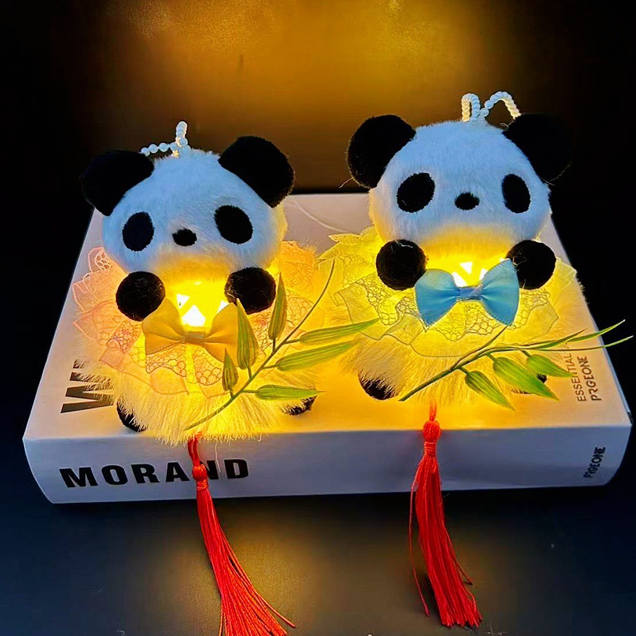 2026马年新款熊猫抱竹仿竹编中秋灯笼夜市地摊儿童手提发光玩具