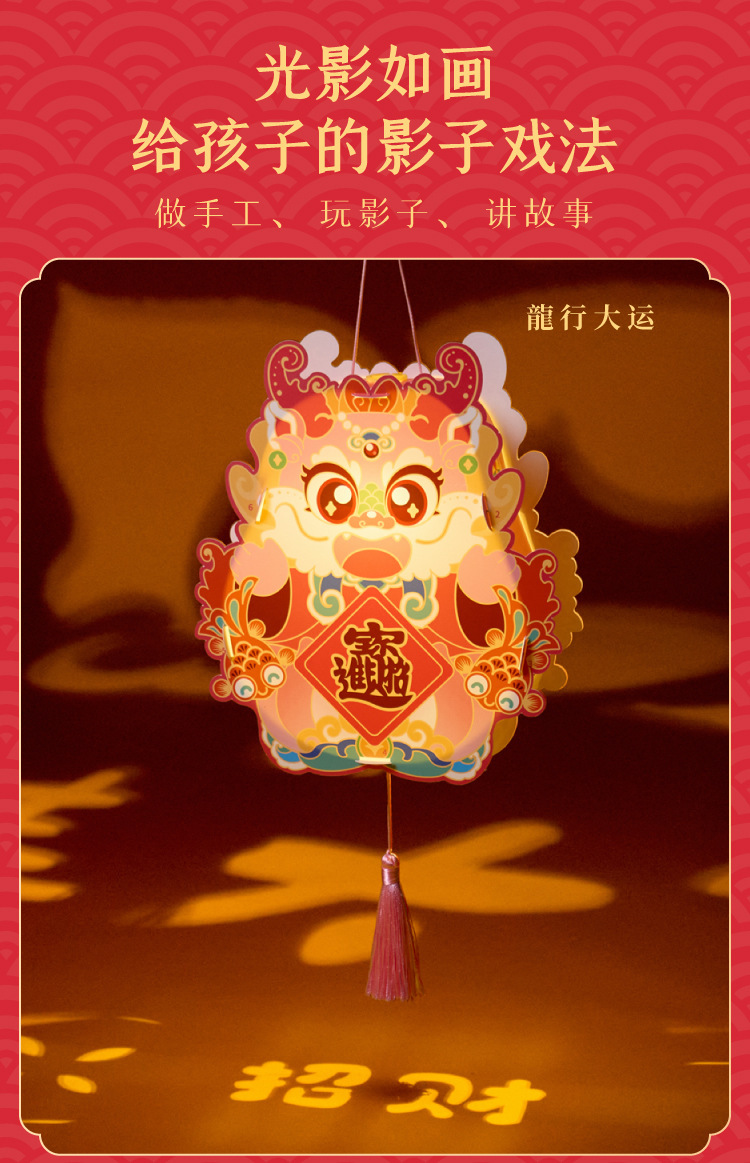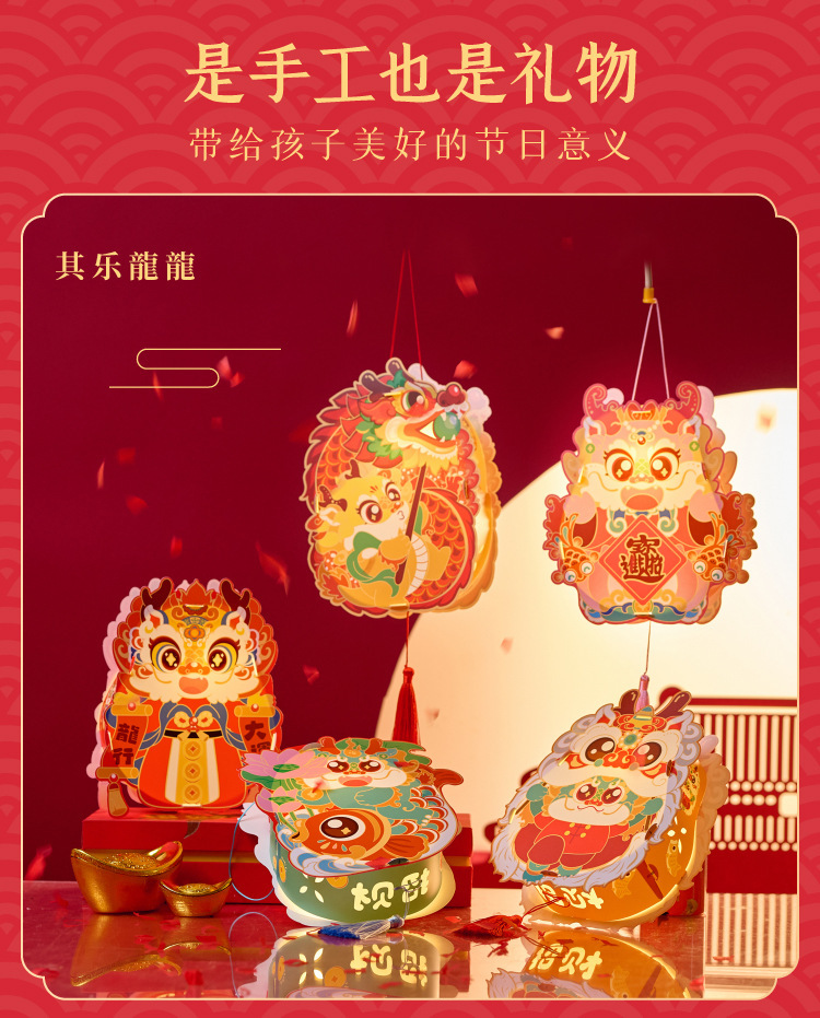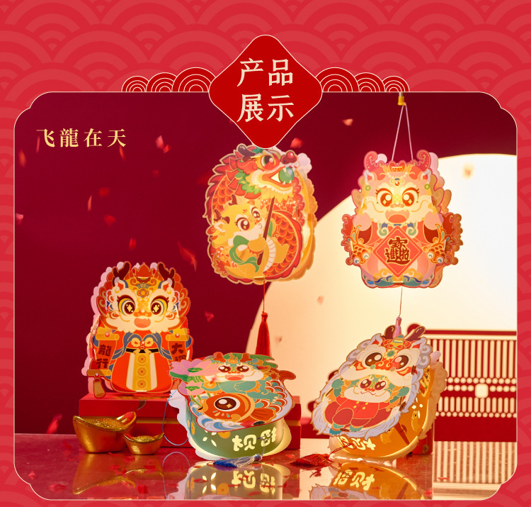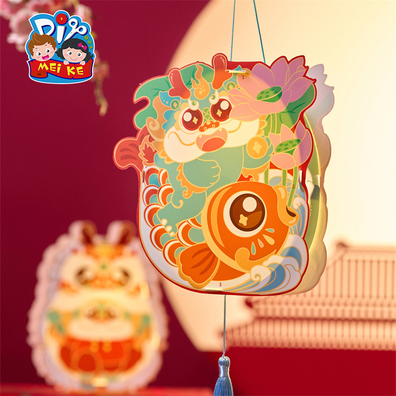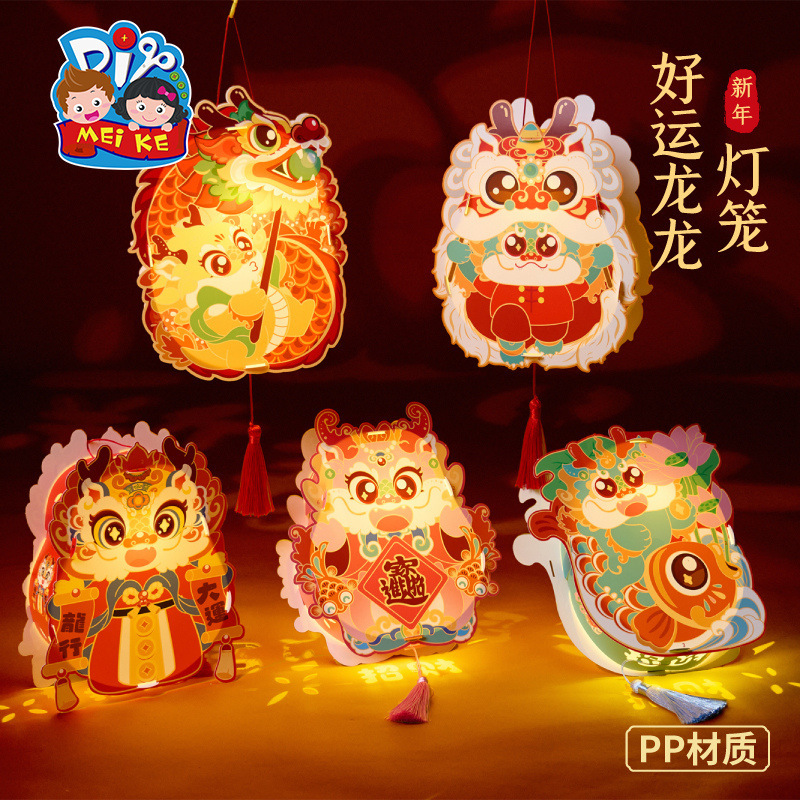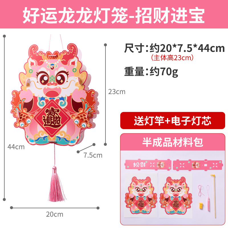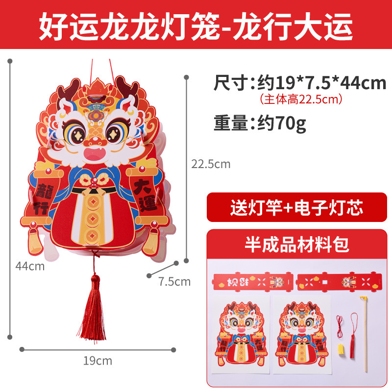 马年好运龙龙灯笼手工diy儿童材料包龙年花灯儿童手持发光玩具