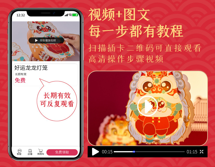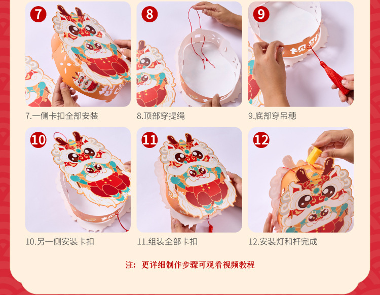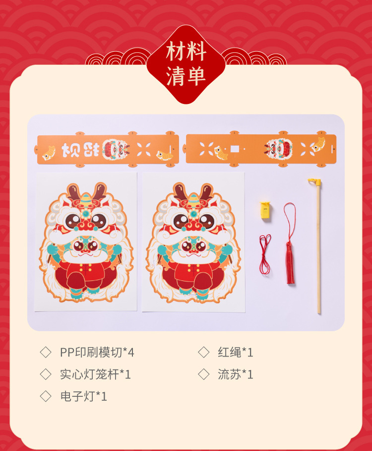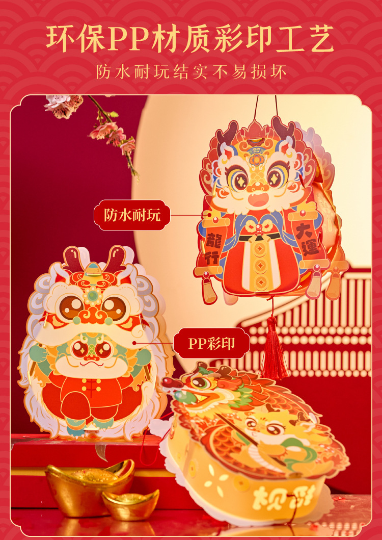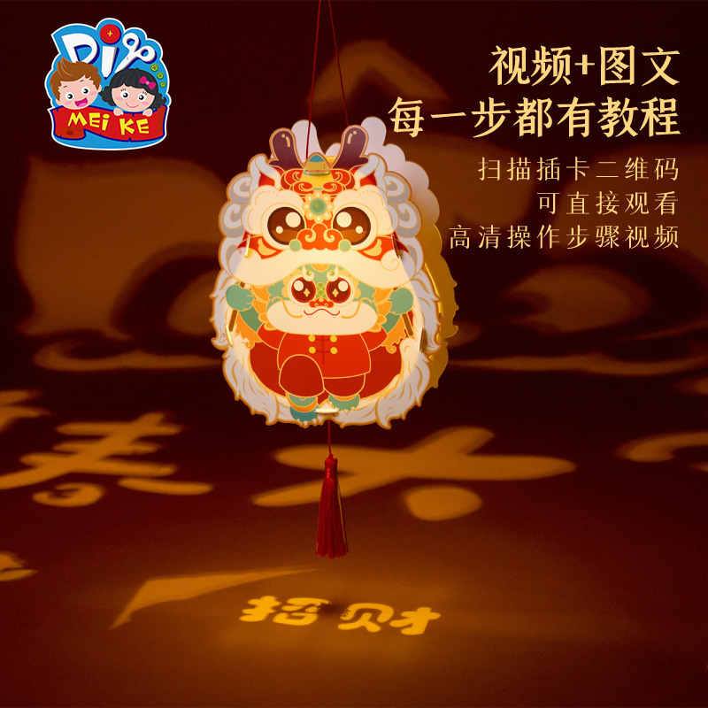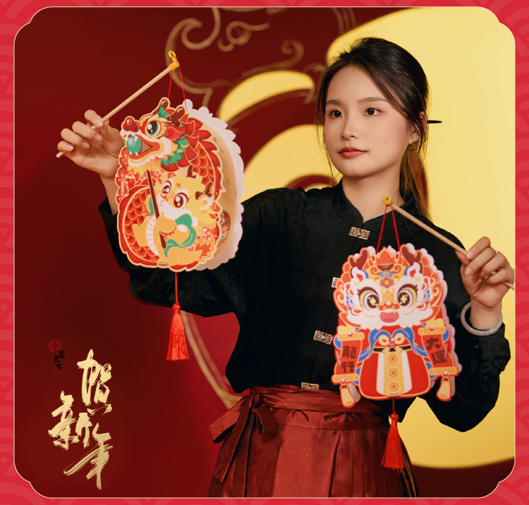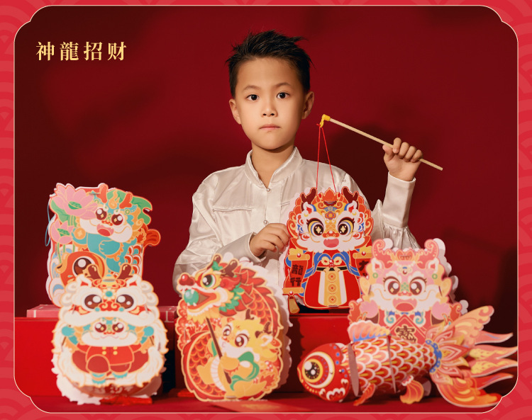 马年好运龙龙灯笼手工diy儿童材料包龙年花灯儿童手持发光玩具