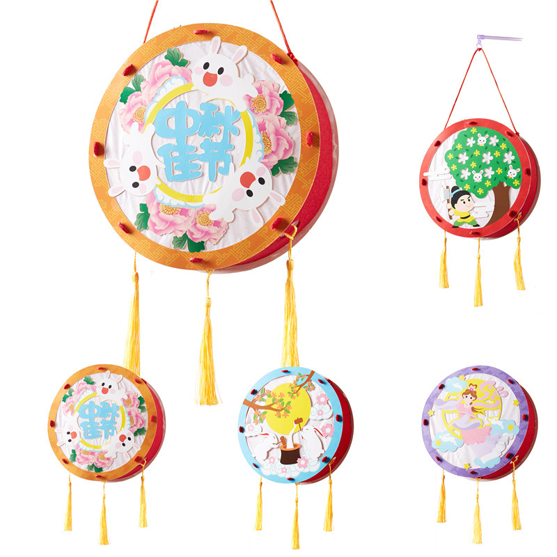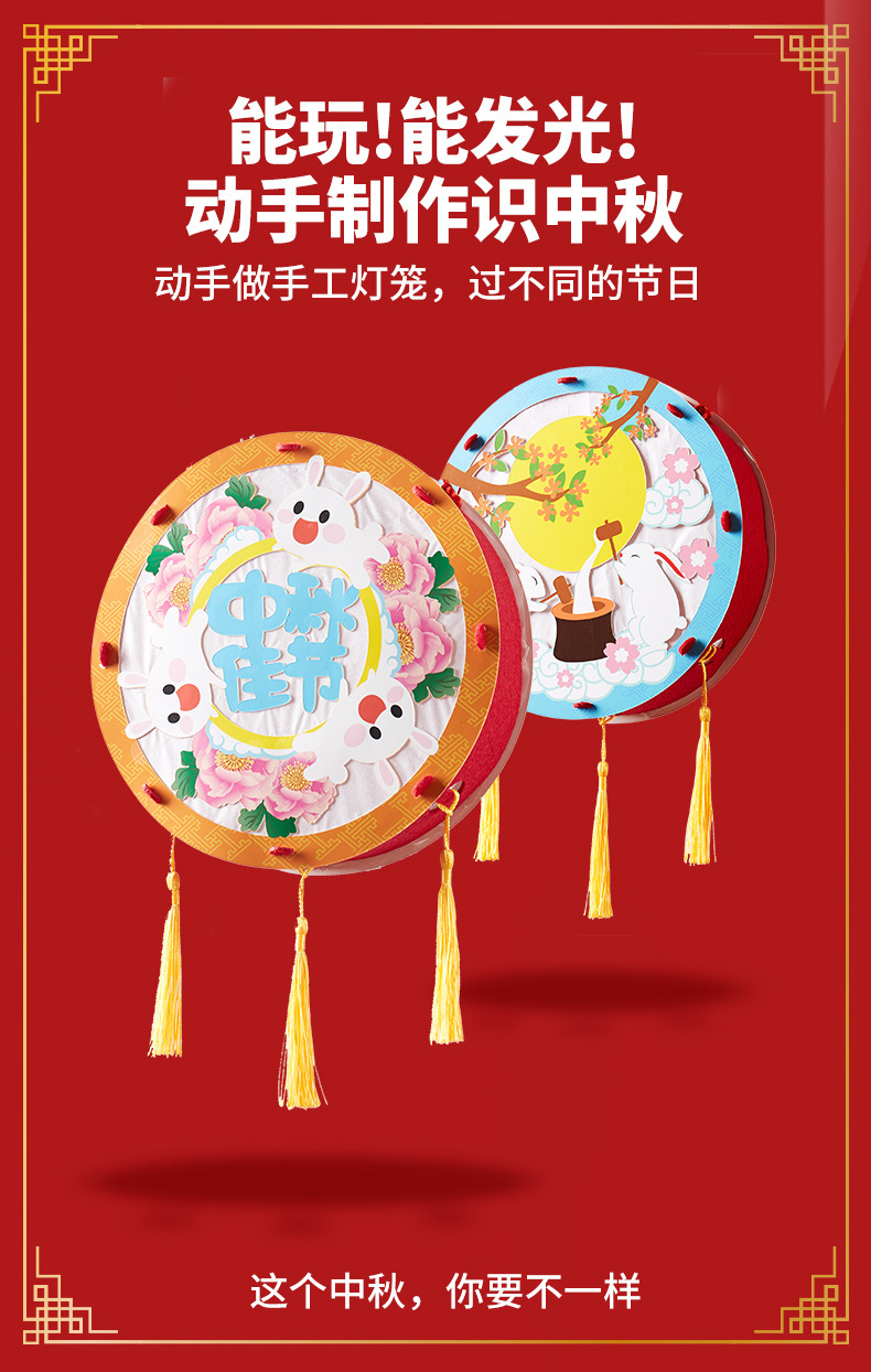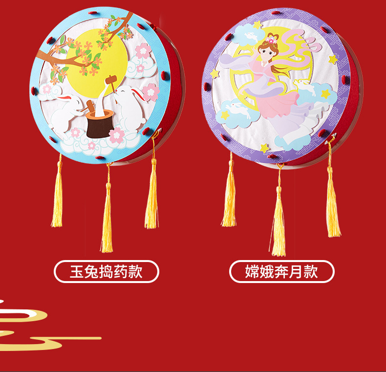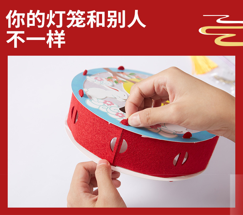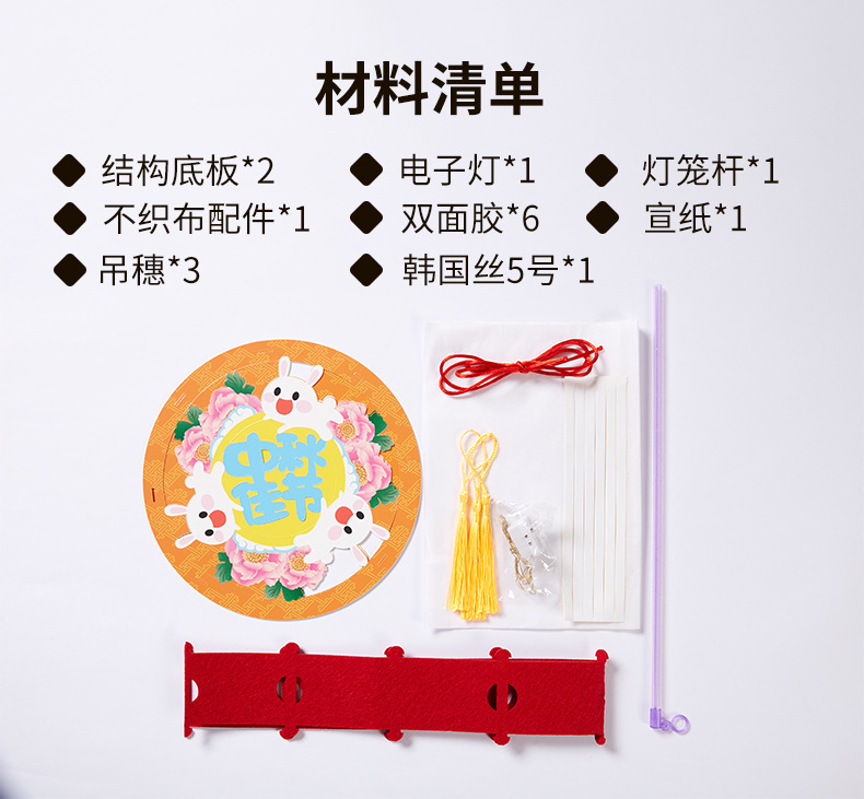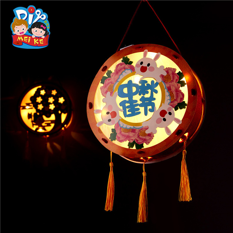 马年新春圆形灯笼手工diy儿童制作材料手提发光兔子花灯批发玩具