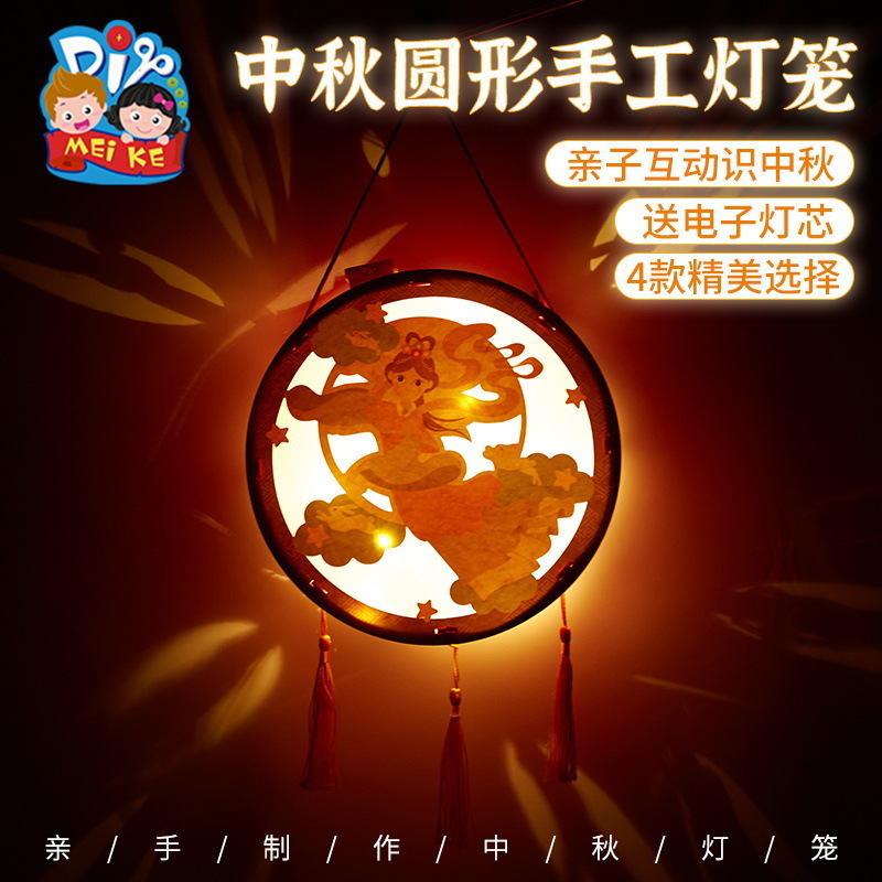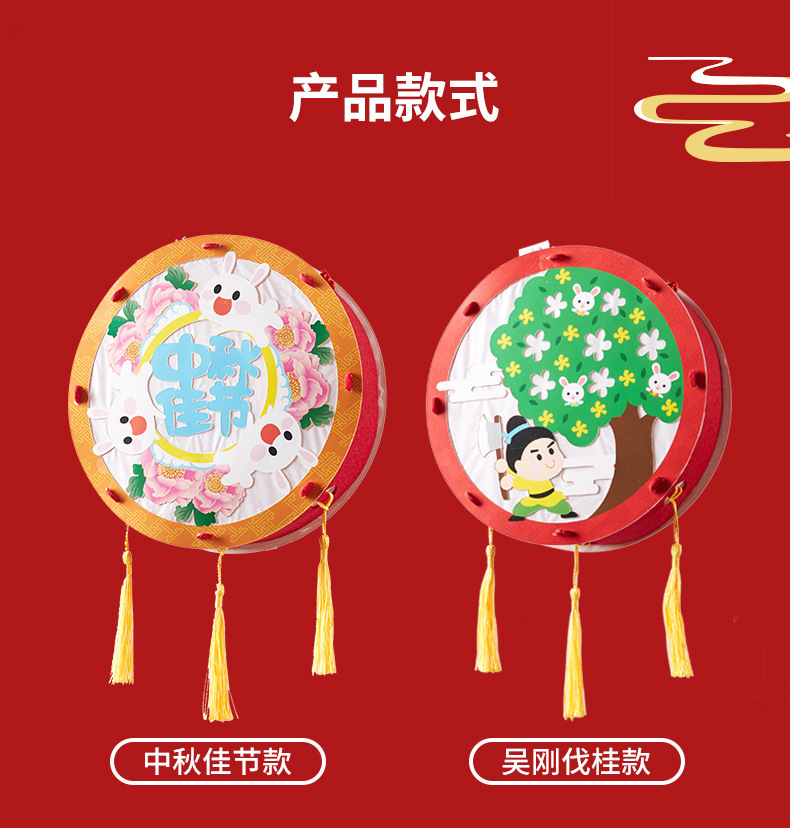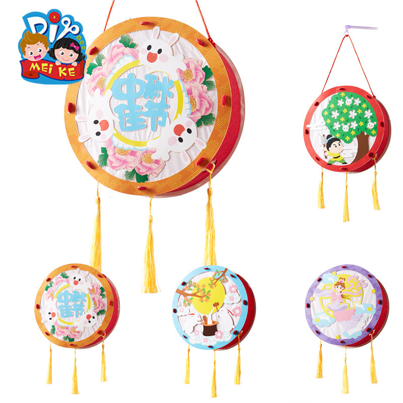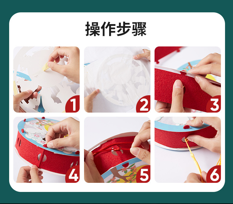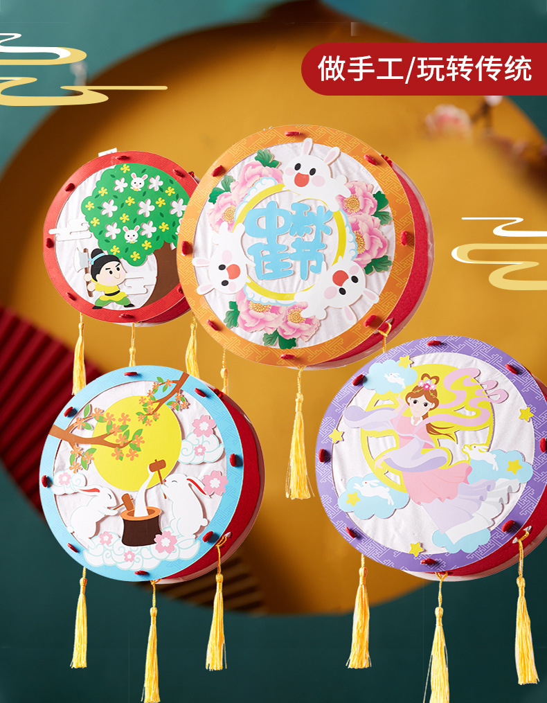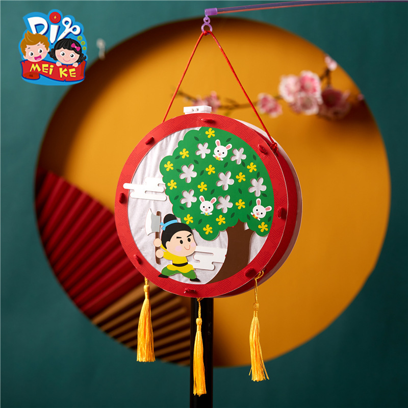 马年新春圆形灯笼手工diy儿童制作材料手提发光兔子花灯批发玩具