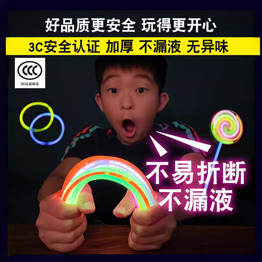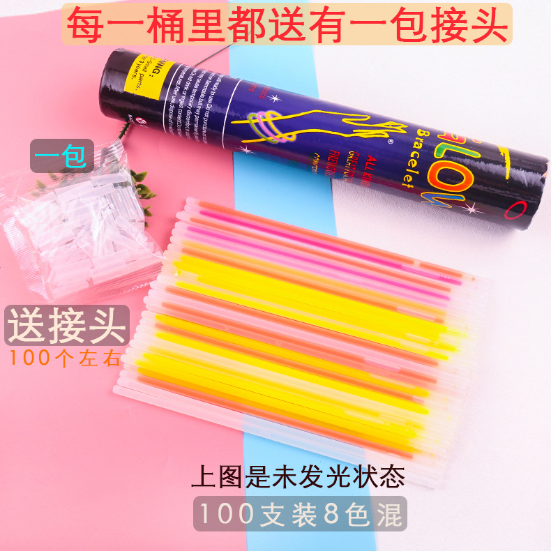 100支装迷你彩色荧光棒儿童发光玩具 夜光银条蓝黄绿色助威荧光棒