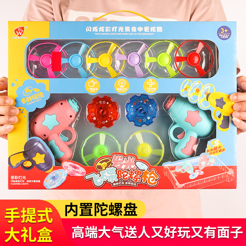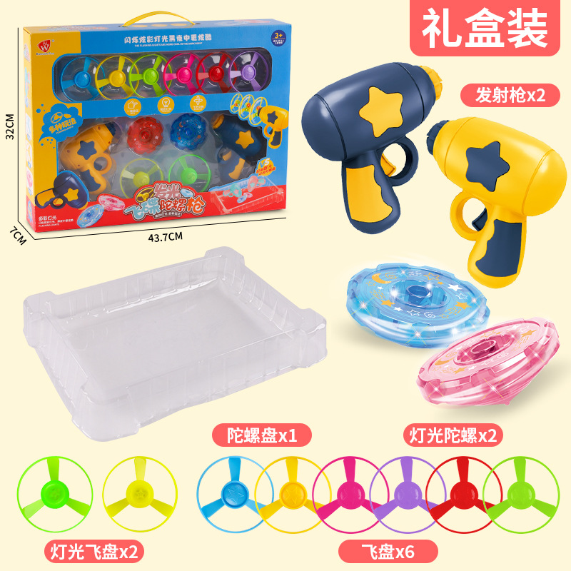 发光竹蜻蜓手枪飞碟弹射旋转陀螺户外亲子互动闪光飞行儿童玩具