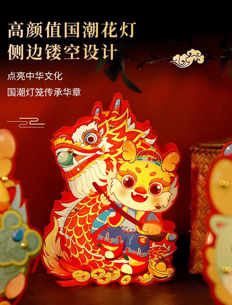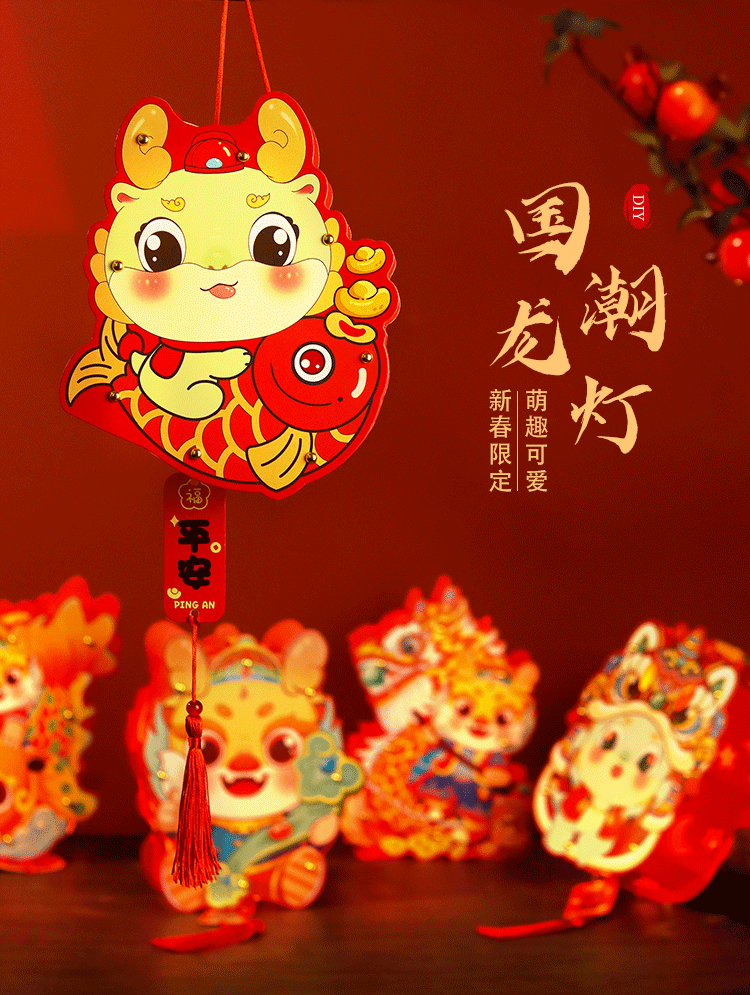 元旦节卡通投影龙灯批发儿童发光小灯笼diy手工花灯夜市摆摊玩具