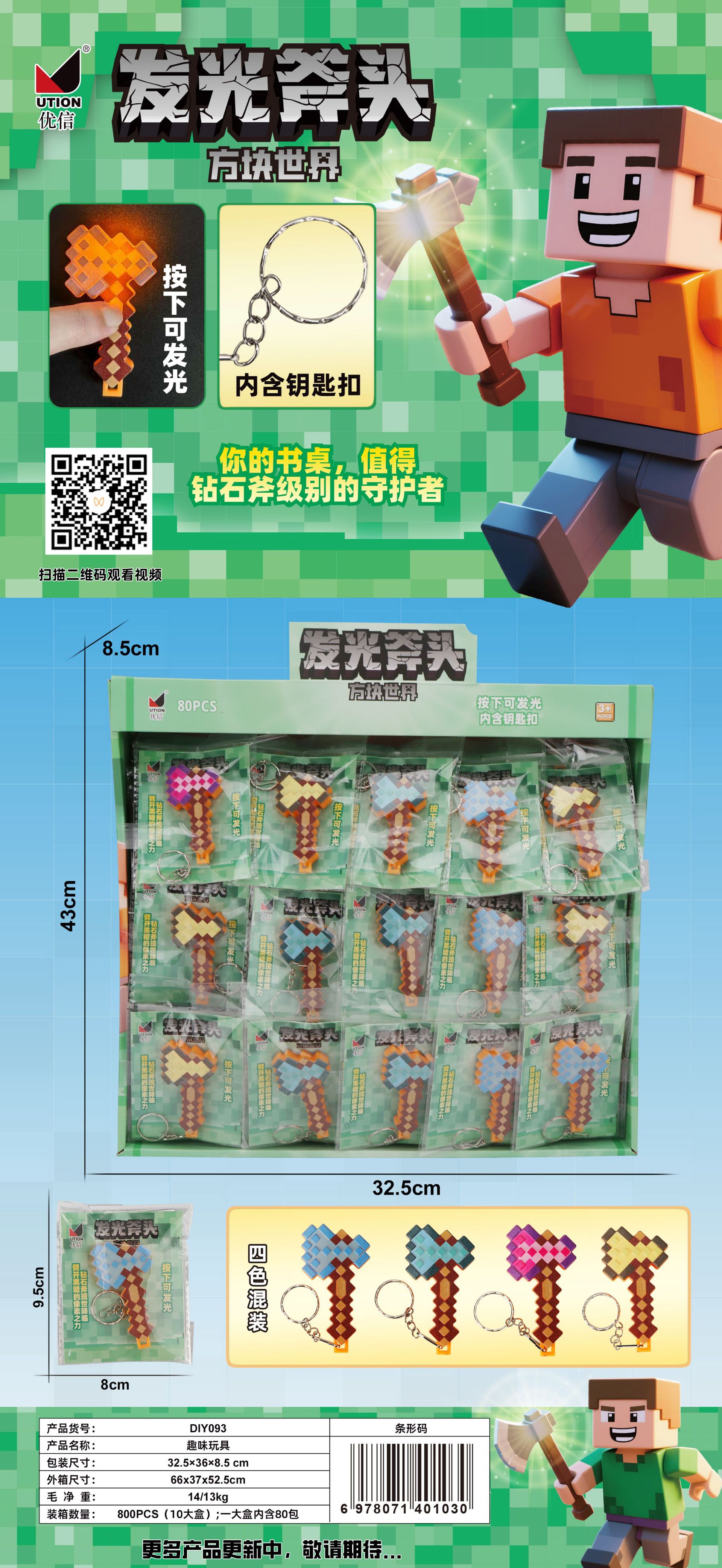 我的世界游戏周边装备发光挂件像素风发光长剑斧头儿童玩具批发