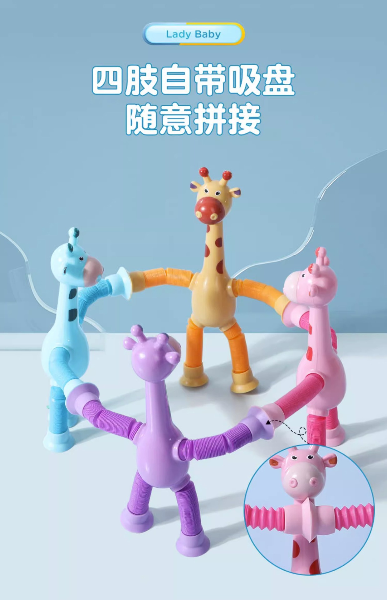 吸盘长颈鹿机器人伸缩玩具百变发光拉长伸管儿童卡通创意益智玩具