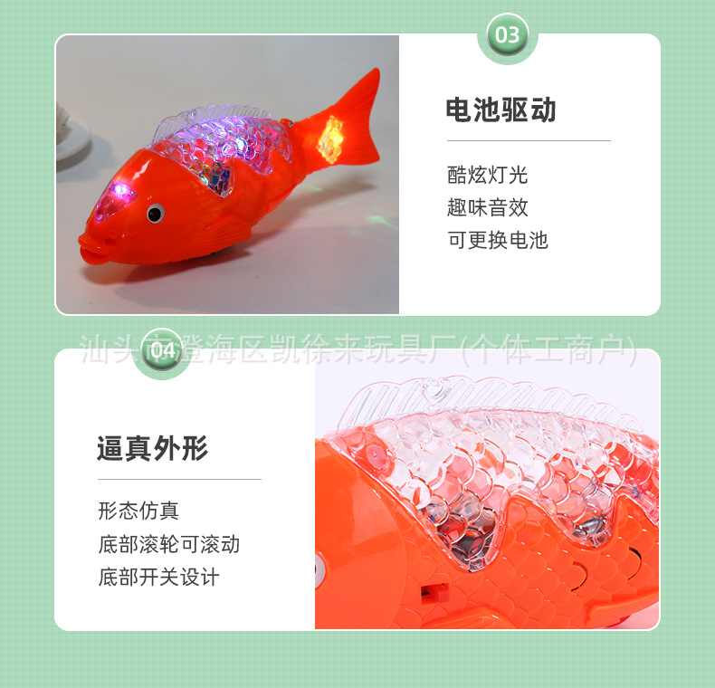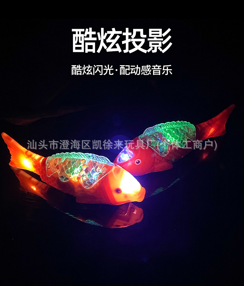 新款投影电动鱼仿真自由鱼音乐摇摆鱼发光玩具自由鱼地摊玩具灯笼
