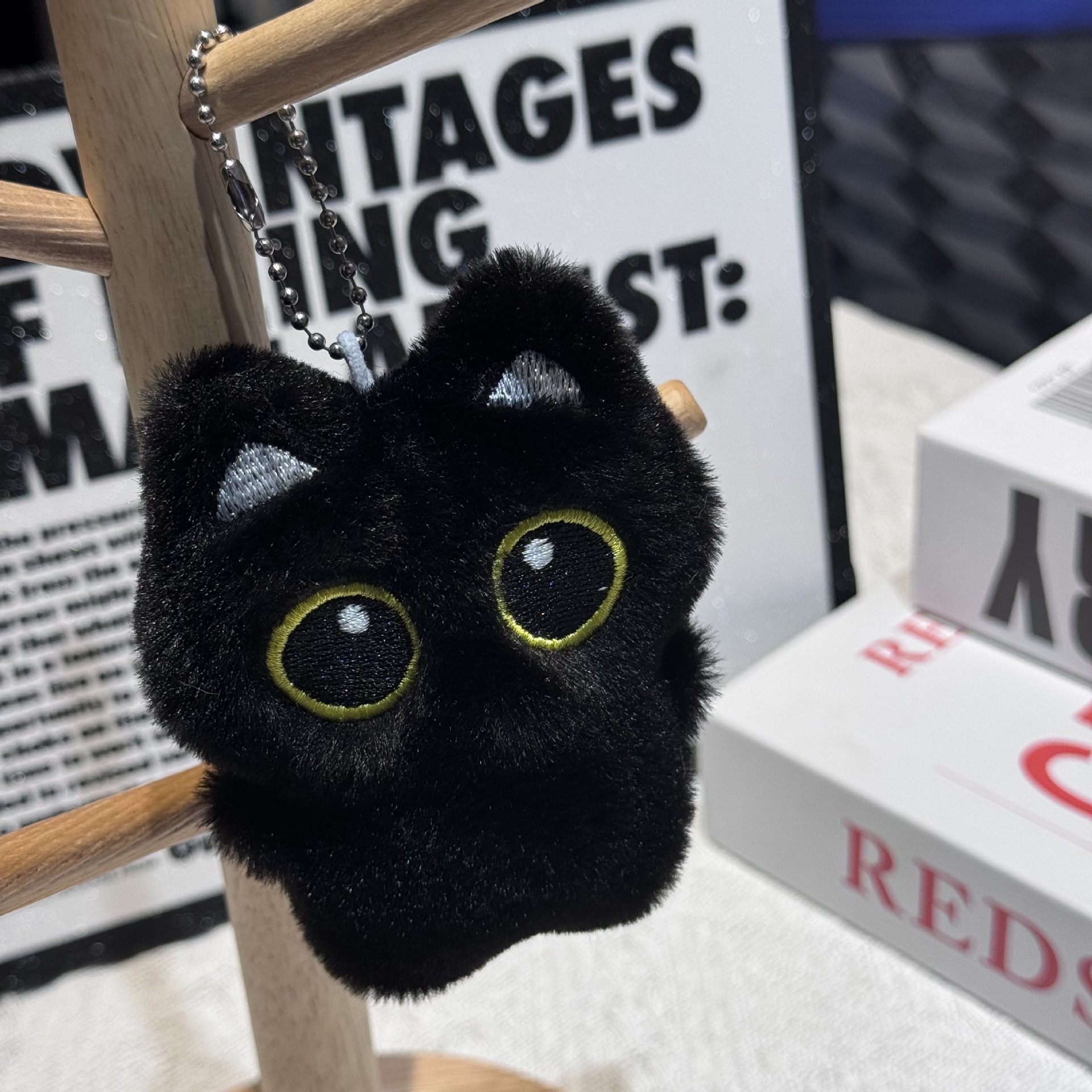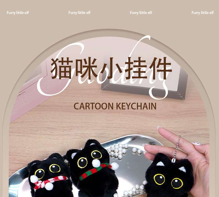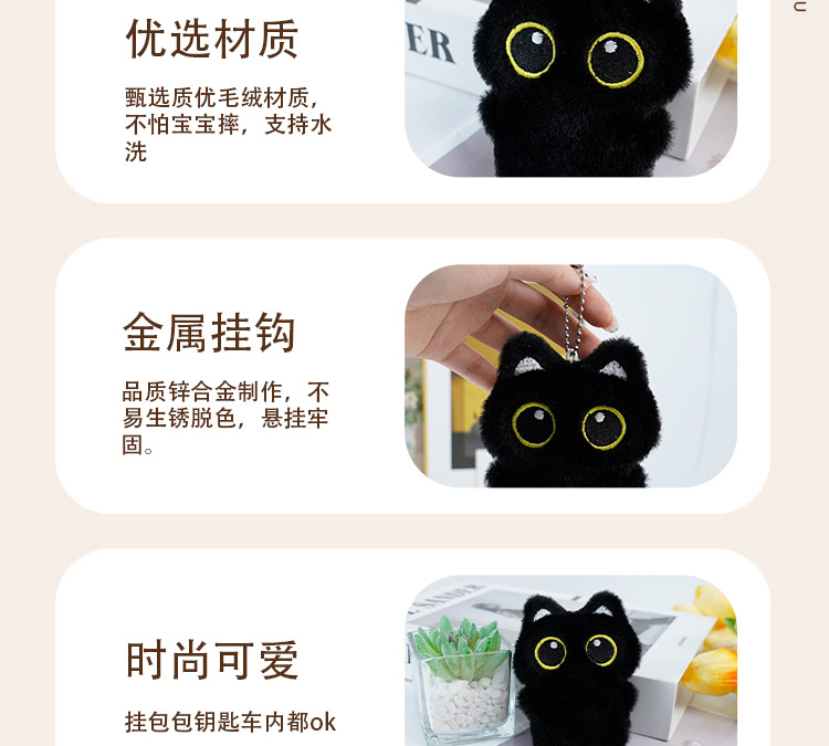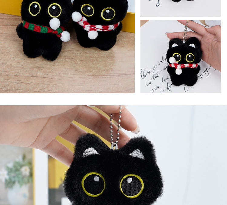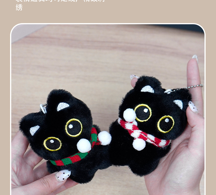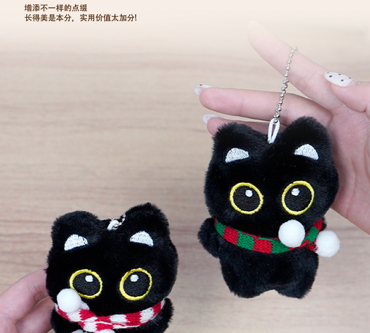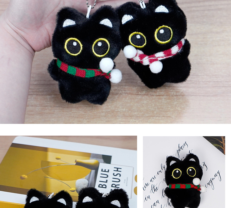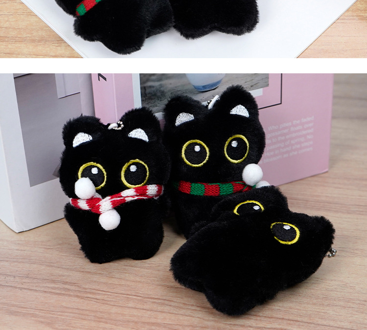 新款黑猫玩偶毛绒玩具小挂件猫咪包包挂饰情侣礼物吱吱叫玩偶批货