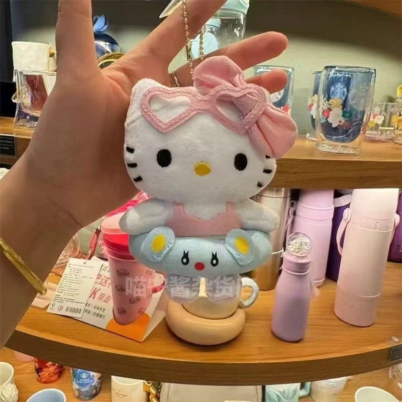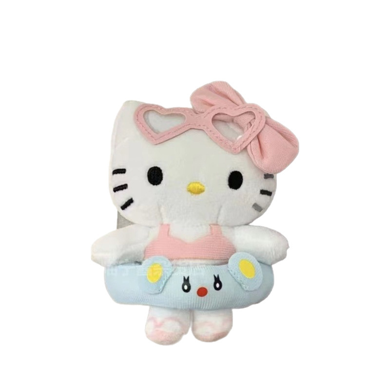 爆红游泳圈kt猫挂件毛绒玩具公仔小猫咪背包包挂饰钥匙扣娃娃批货