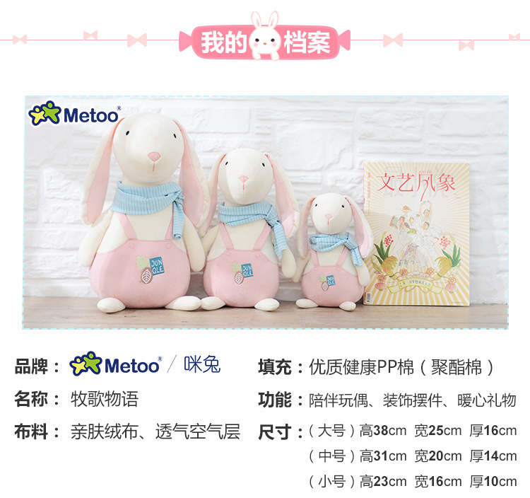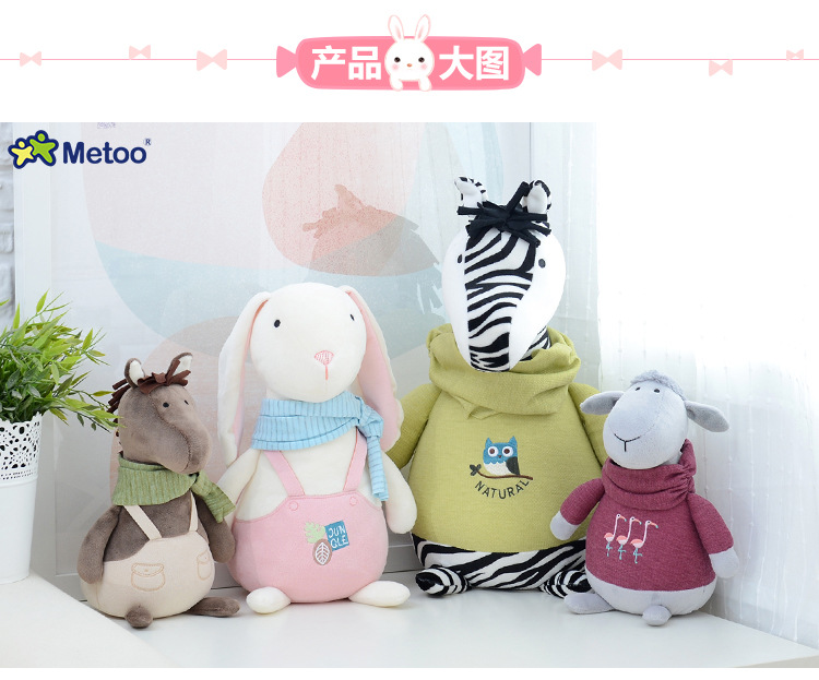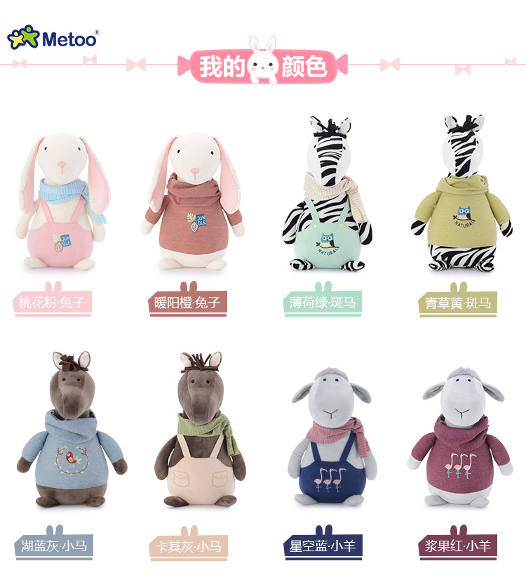咪兔metoo牧歌物语毛绒公仔斑马小羊玩偶抓机娃娃儿童玩具迷你