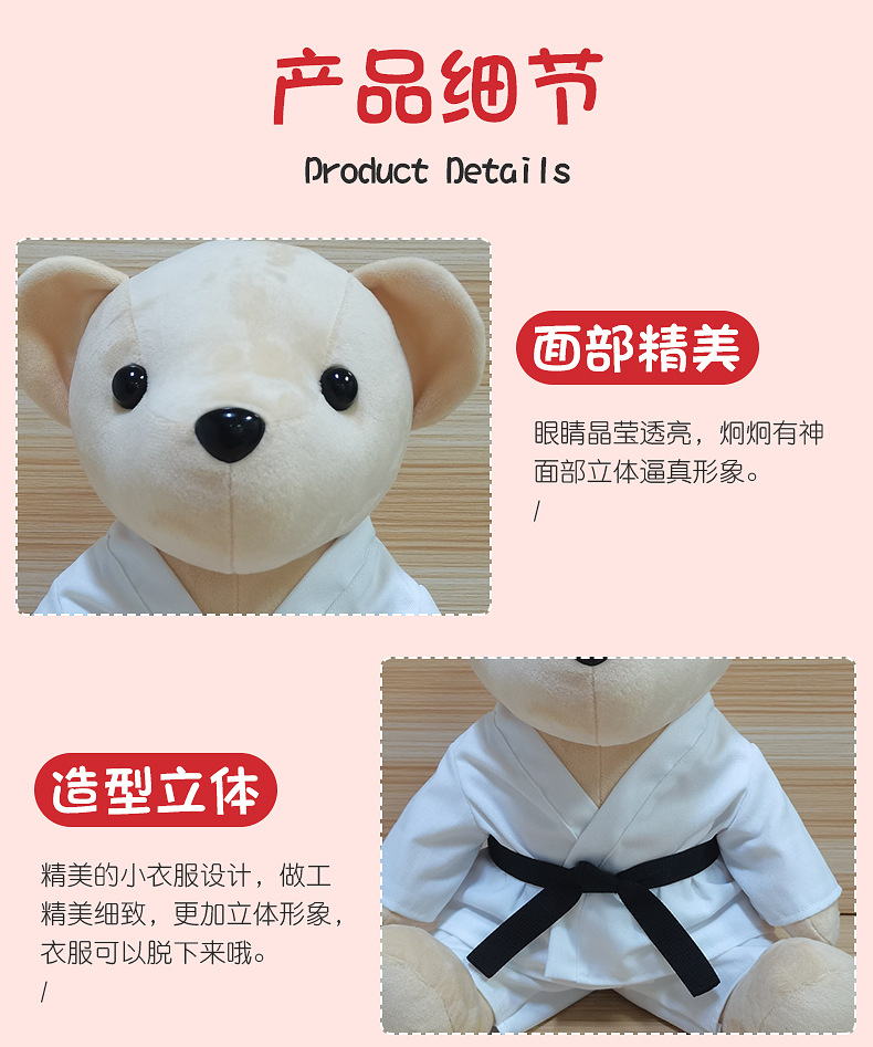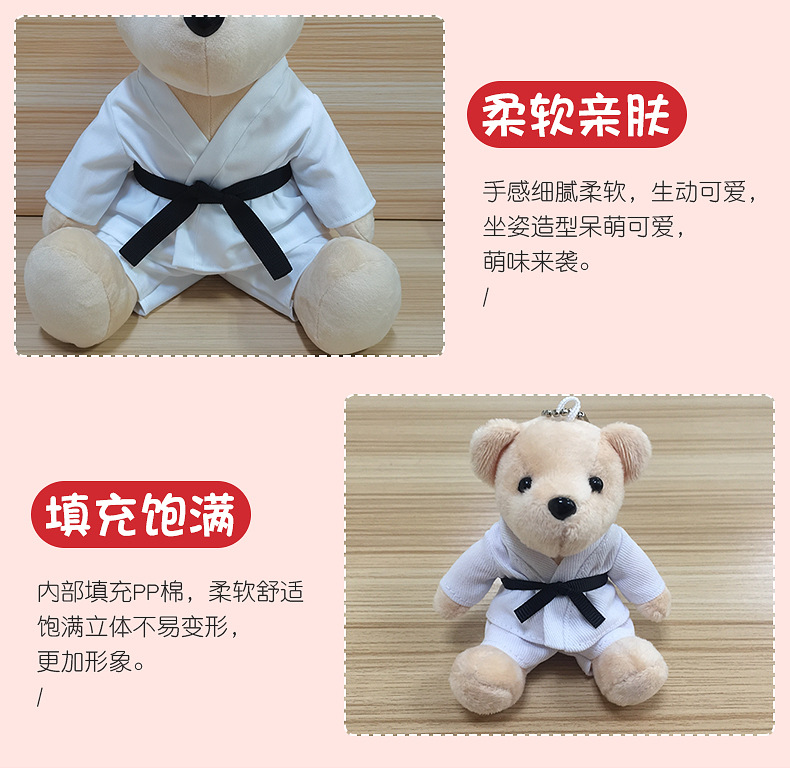 玩偶熊毛绒玩具迷你毛绒熊娃娃跆拳道服泰迪熊礼品小玩偶挂饰公仔