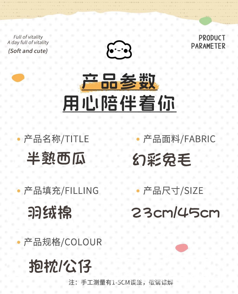 可爱卡通西瓜毛绒玩具水果西瓜玩偶夹娃娃机婚庆抛洒地摊礼品批货