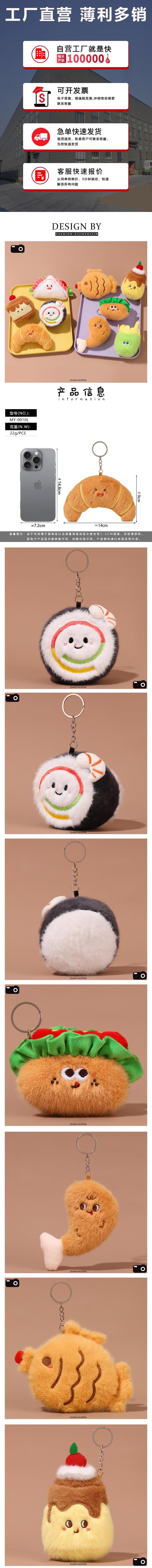 可爱糕点西餐汉堡毛绒挂件仿真食品面包挂饰钥匙扣小公仔批货摆摊