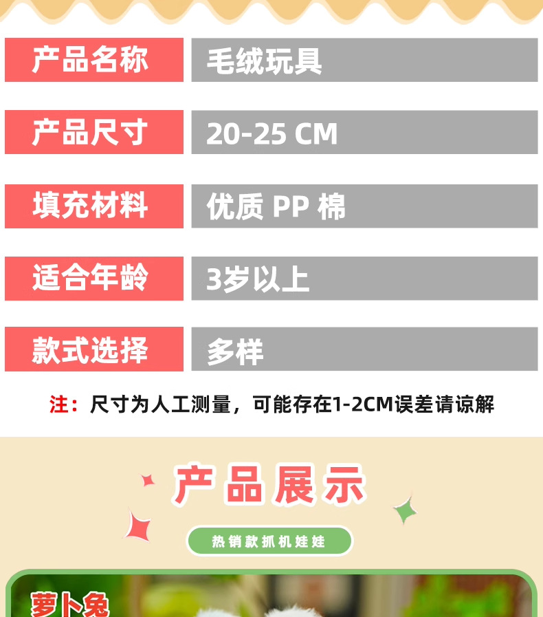 厂家批发流量款8寸抓娃娃机毛绒玩具公仔地摊婚庆抛洒批货玩偶