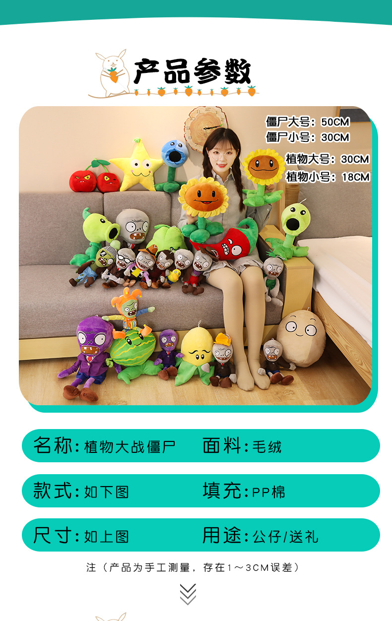 植物大战僵尸游戏毛绒玩具植物布娃娃玩偶抱枕抓娃娃机公仔批发