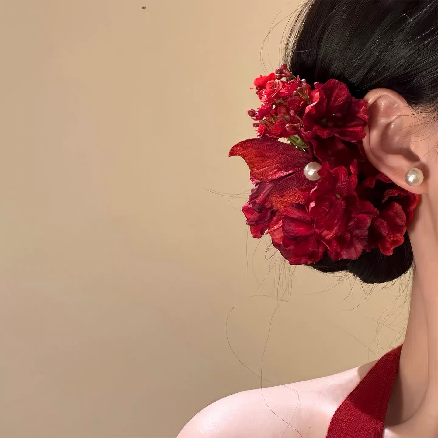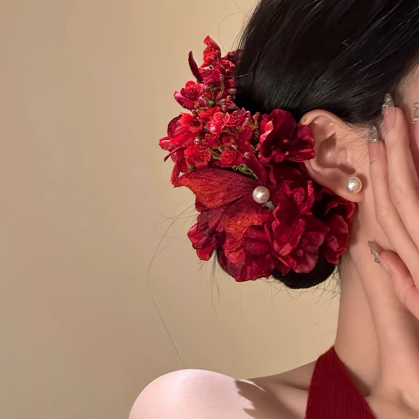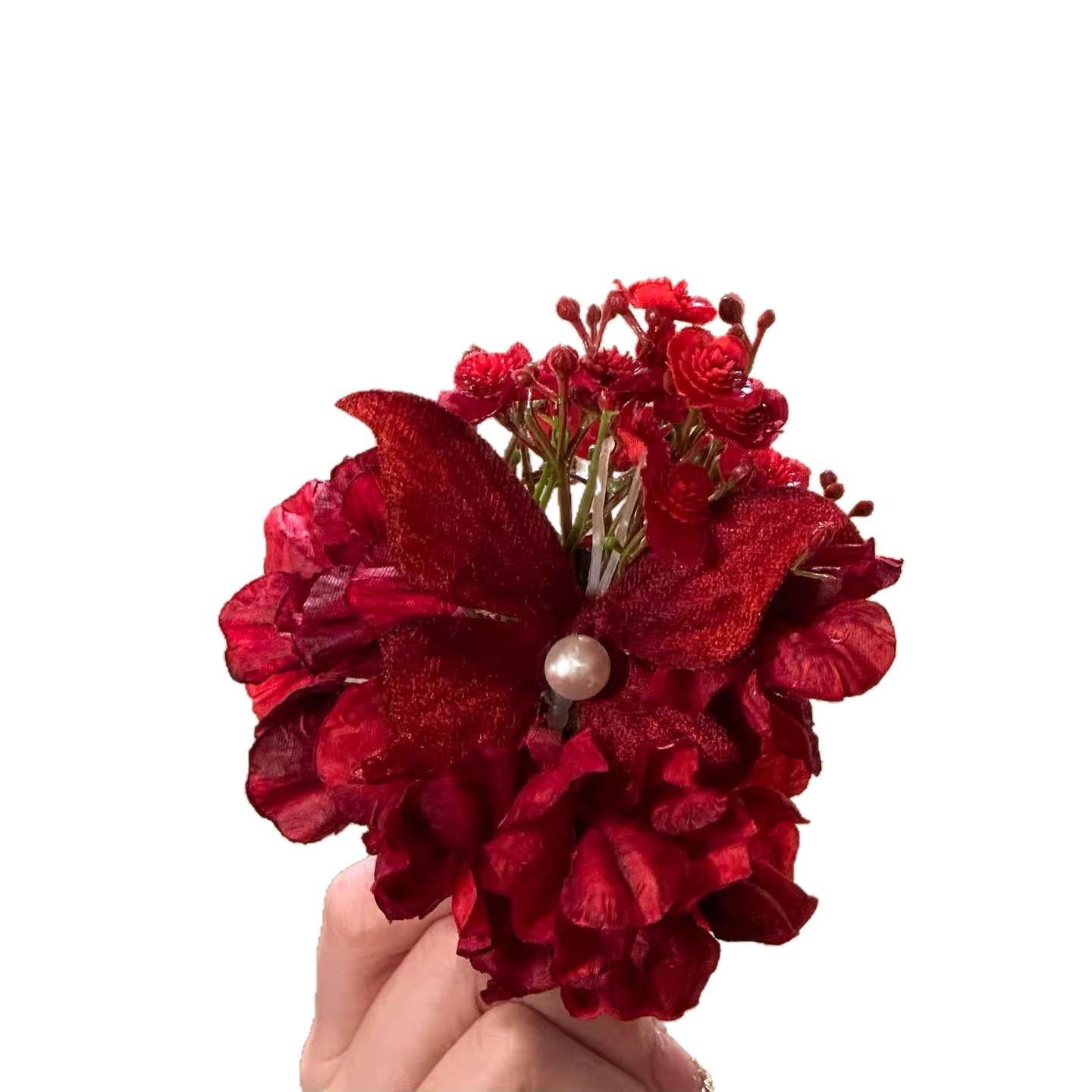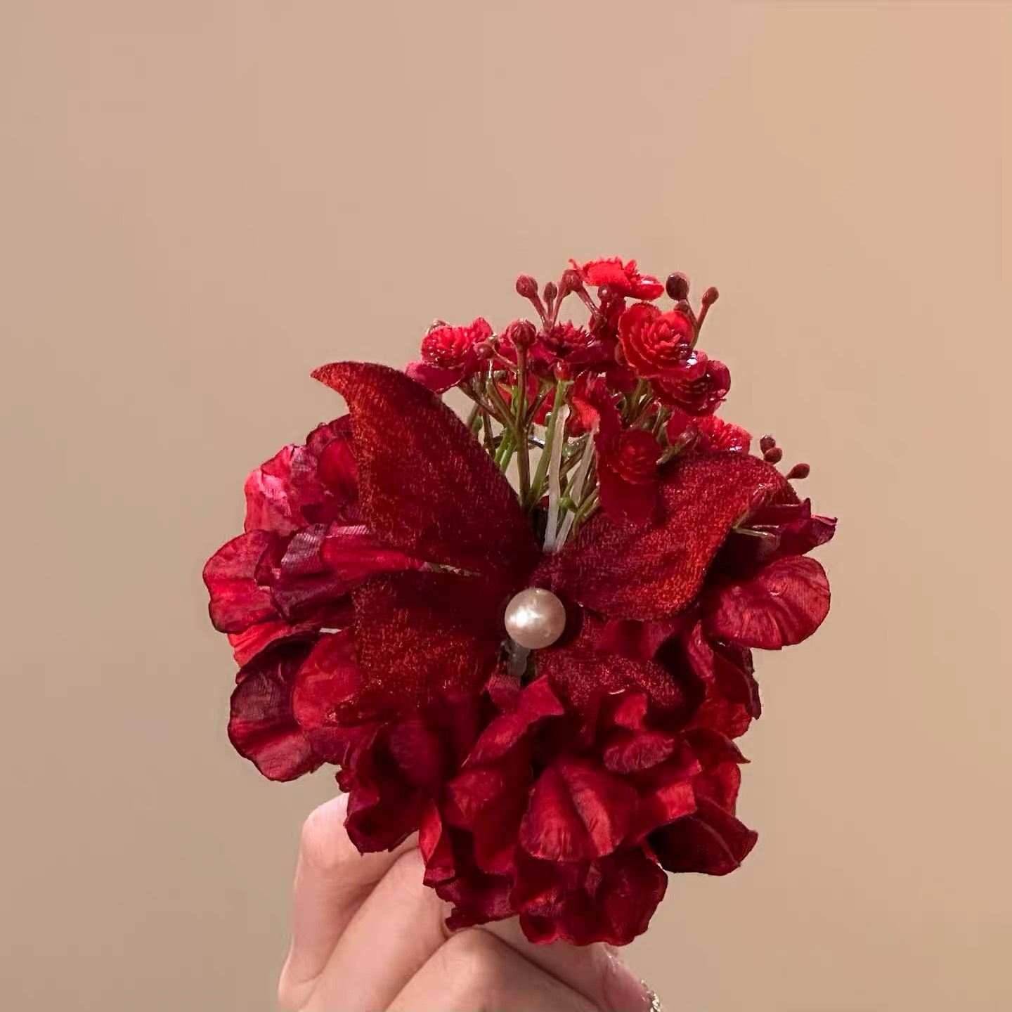 2025新款「红棠蝶梦」新中式红色蝴蝶花朵发夹古风发饰女头饰头花