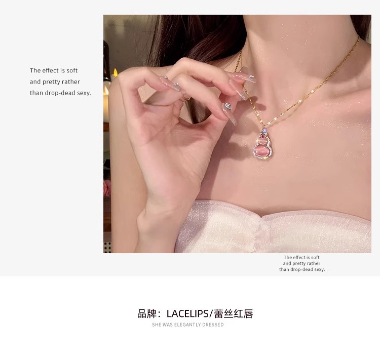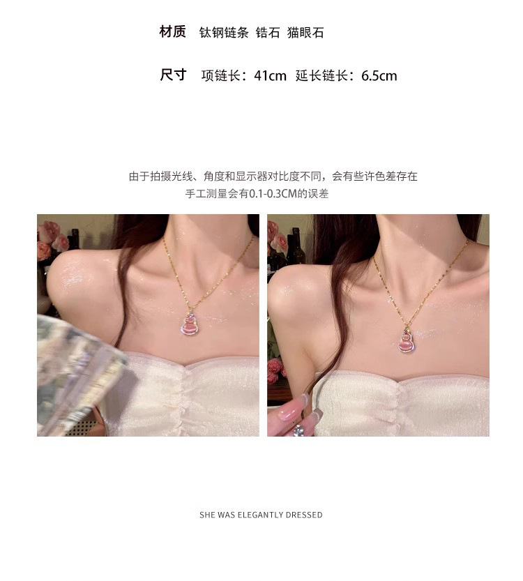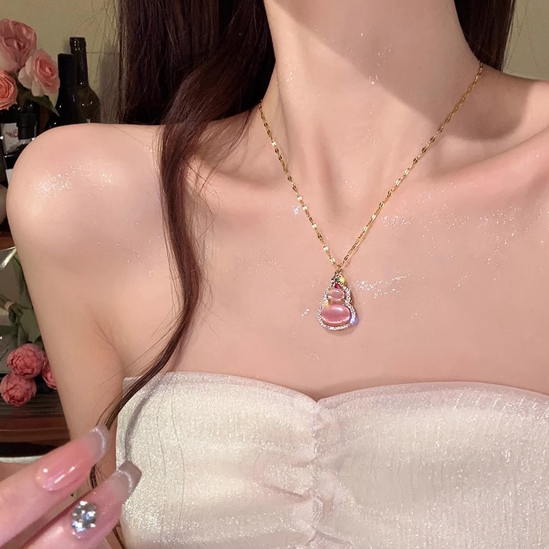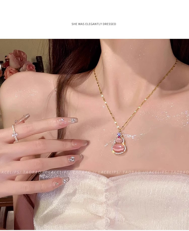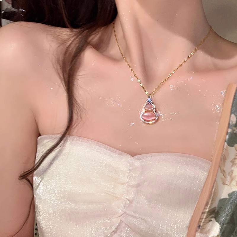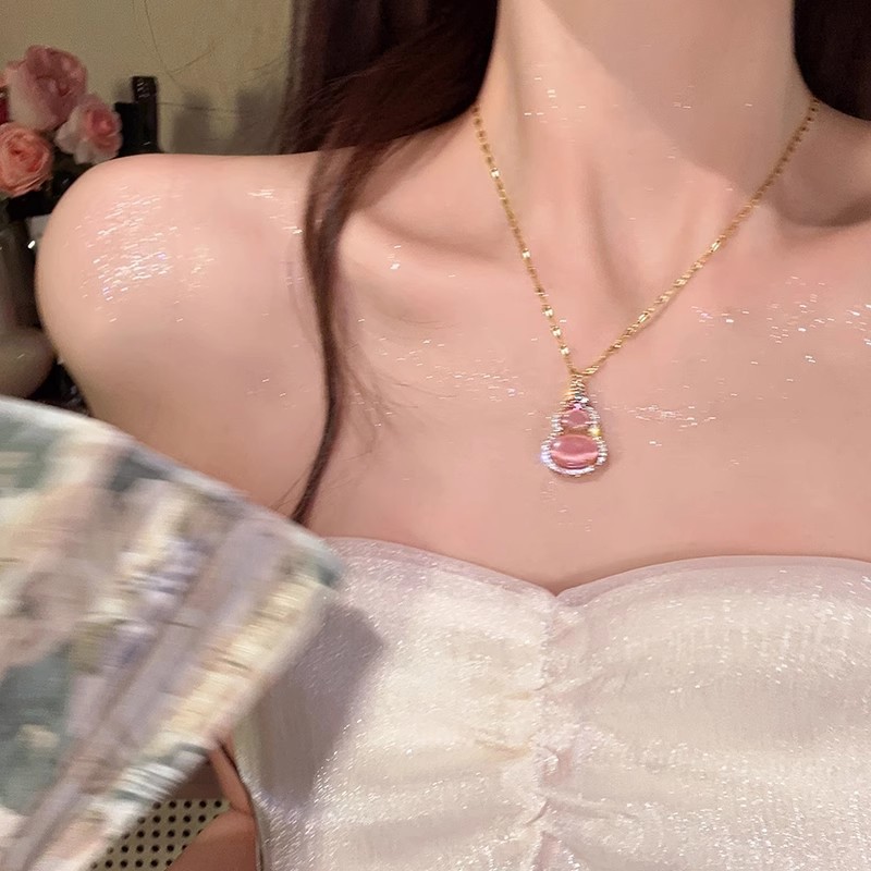 新中式粉色猫眼石葫芦项链女款锁骨链轻奢小众高级感毛衣颈链配饰