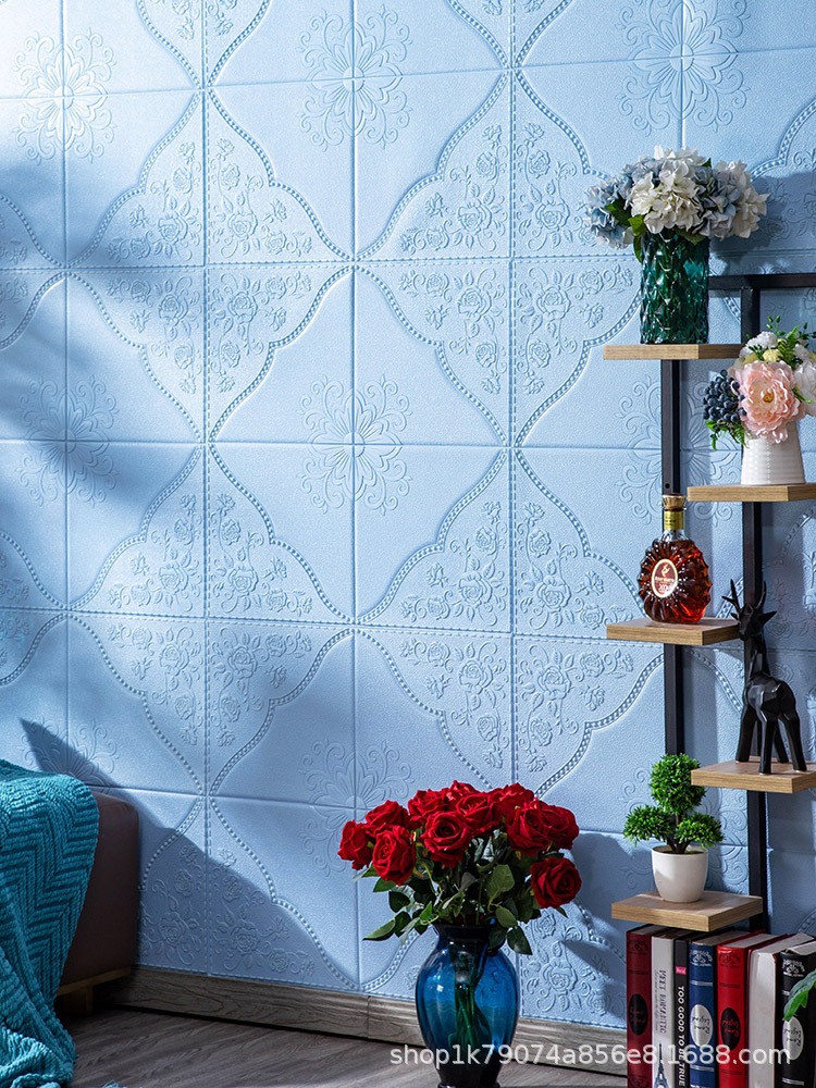 跨境外贸小尺寸天花板屋顶装饰墙纸自粘温馨卧室3d立体墙贴防水潮