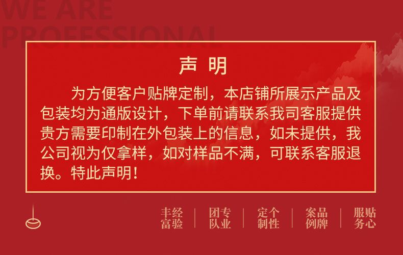本公司所有产品支持混批,同时支持贴牌定制、来料加工,不管量大量小,我们都能为您提供解决方案,详情请咨询客服。