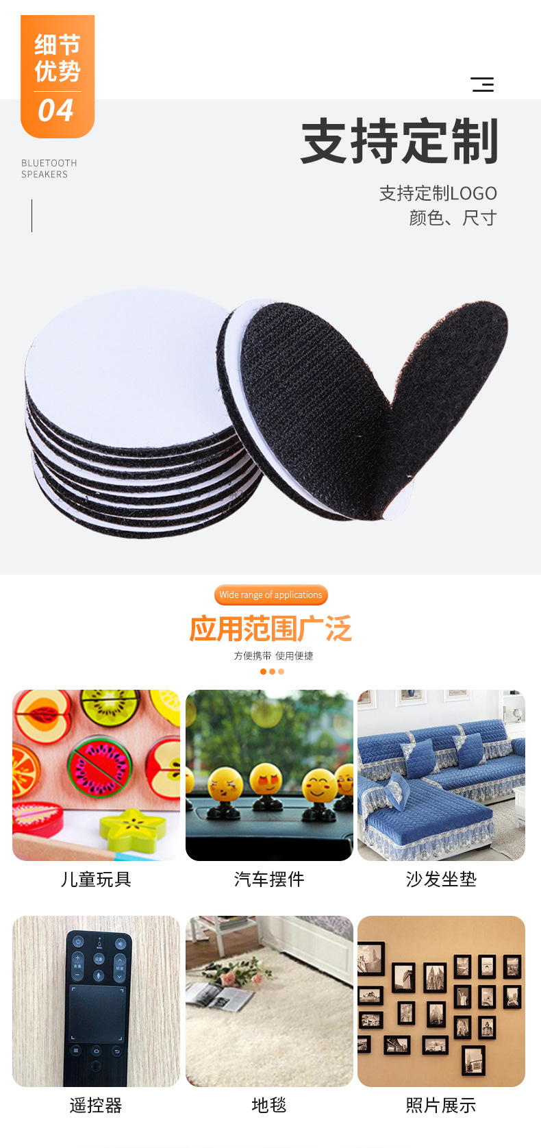 强力圆形背胶魔术贴沙发地毯桌布固定粘贴无痕双面带胶魔术贴定制