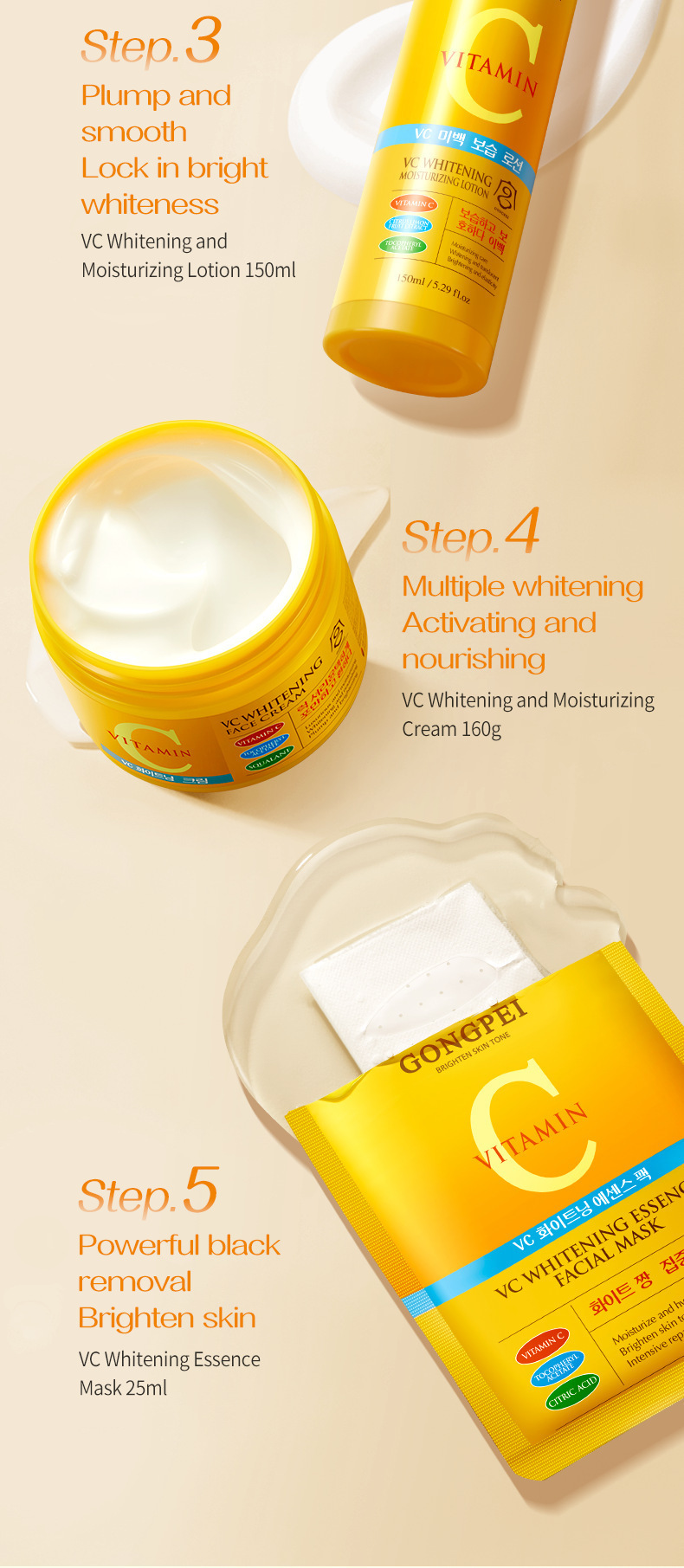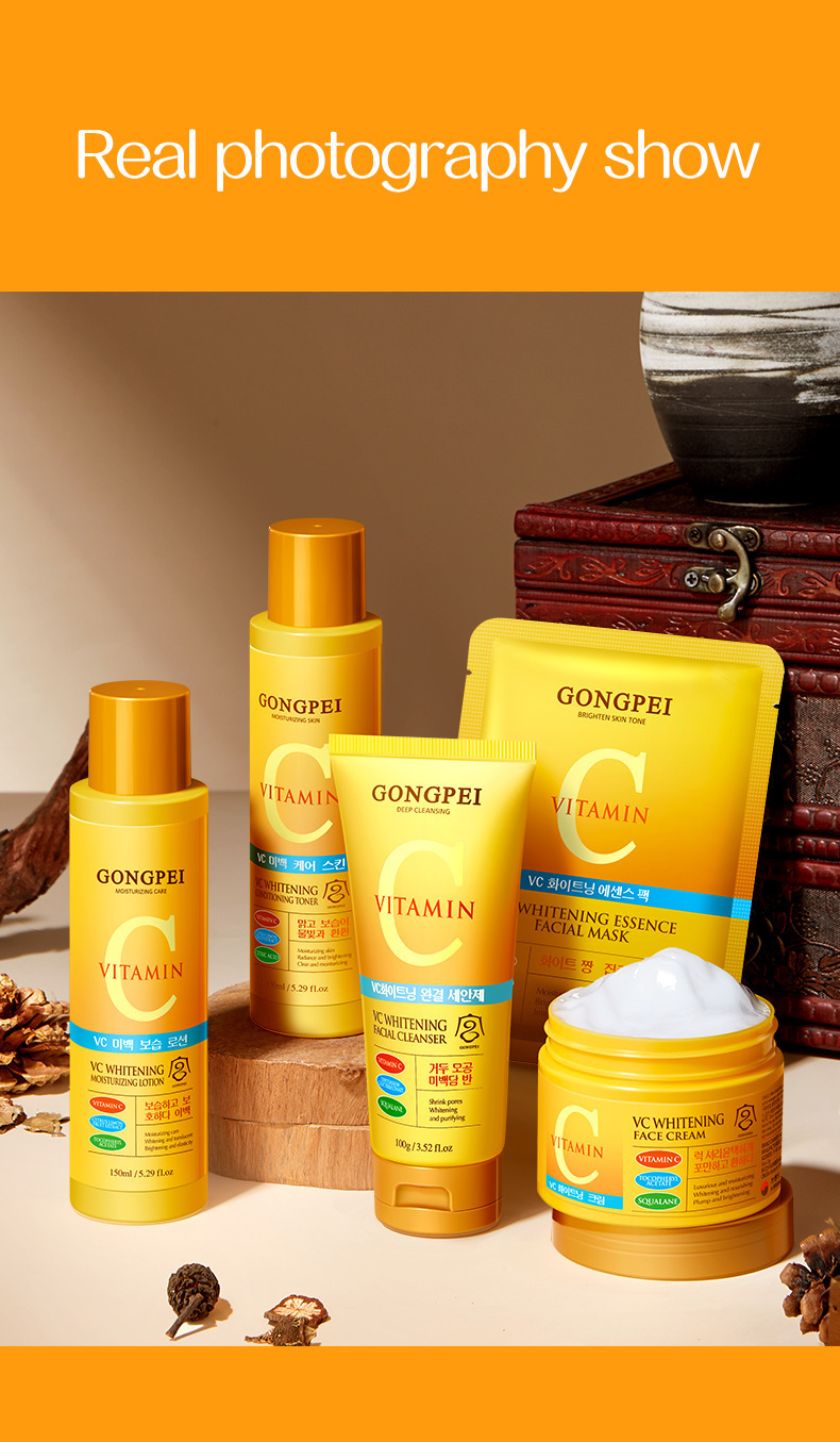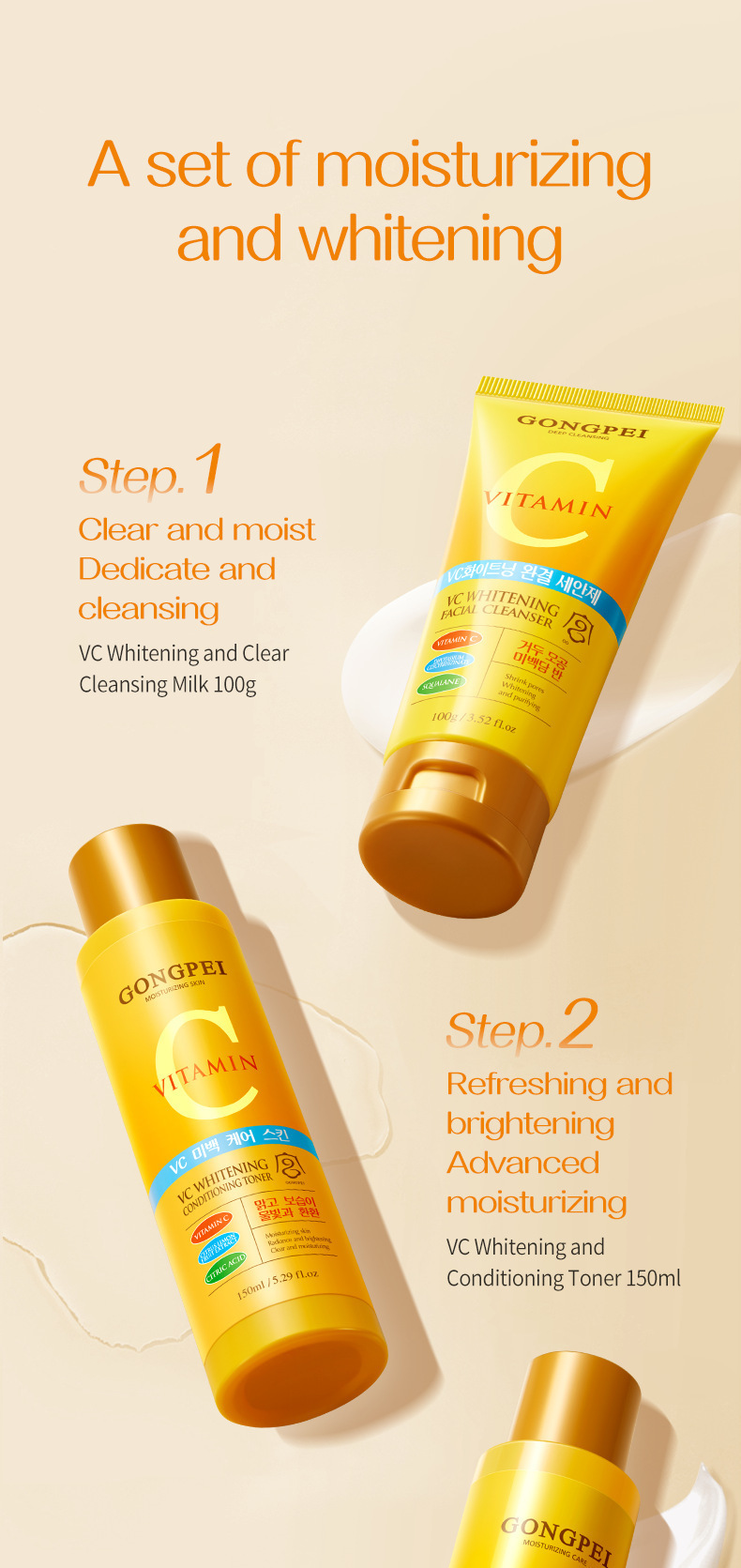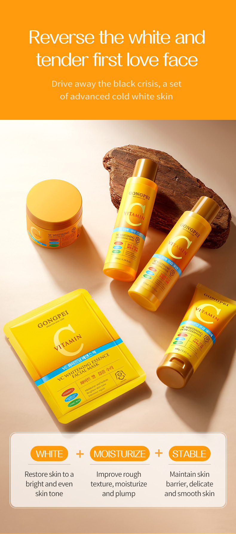 全英文宫佩VC美白滋润面部护肤套盒 洁面乳爽肤水乳面膜跨境批发