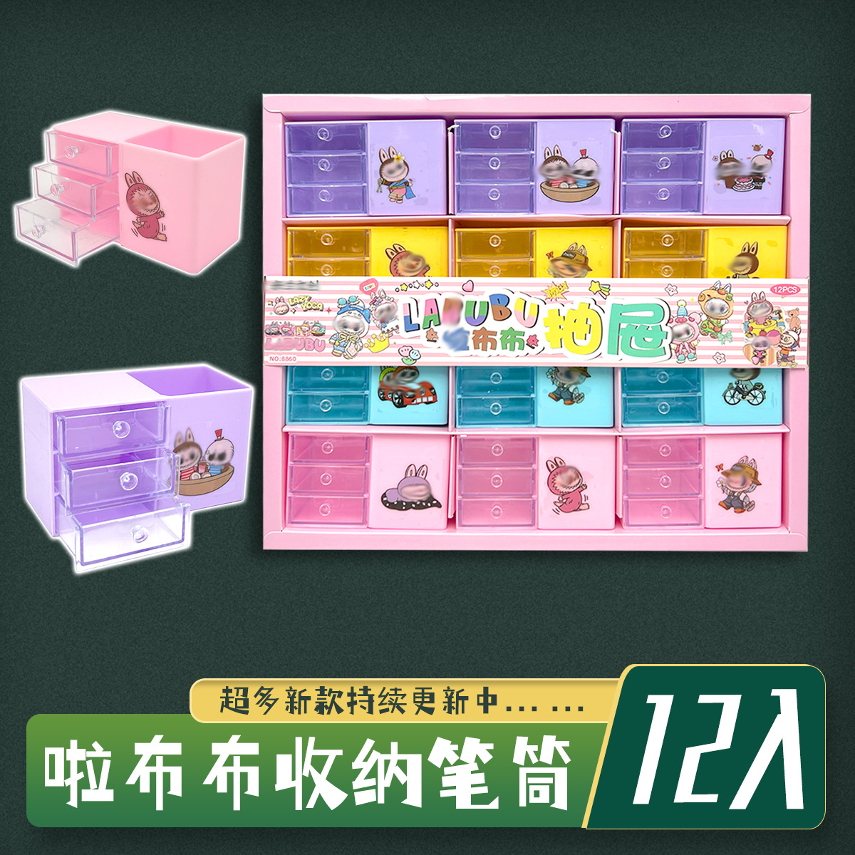 12入卡皮巴拉新款高颜值卡通可爱多功能收纳盒笔筒儿童抽屉式迷你