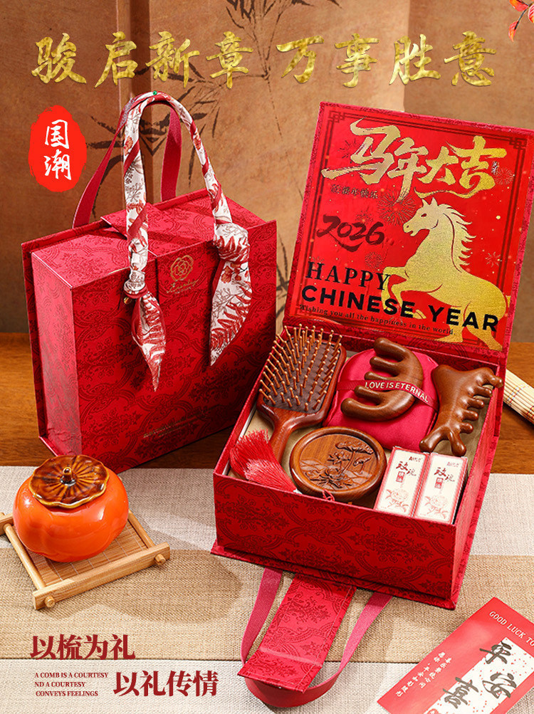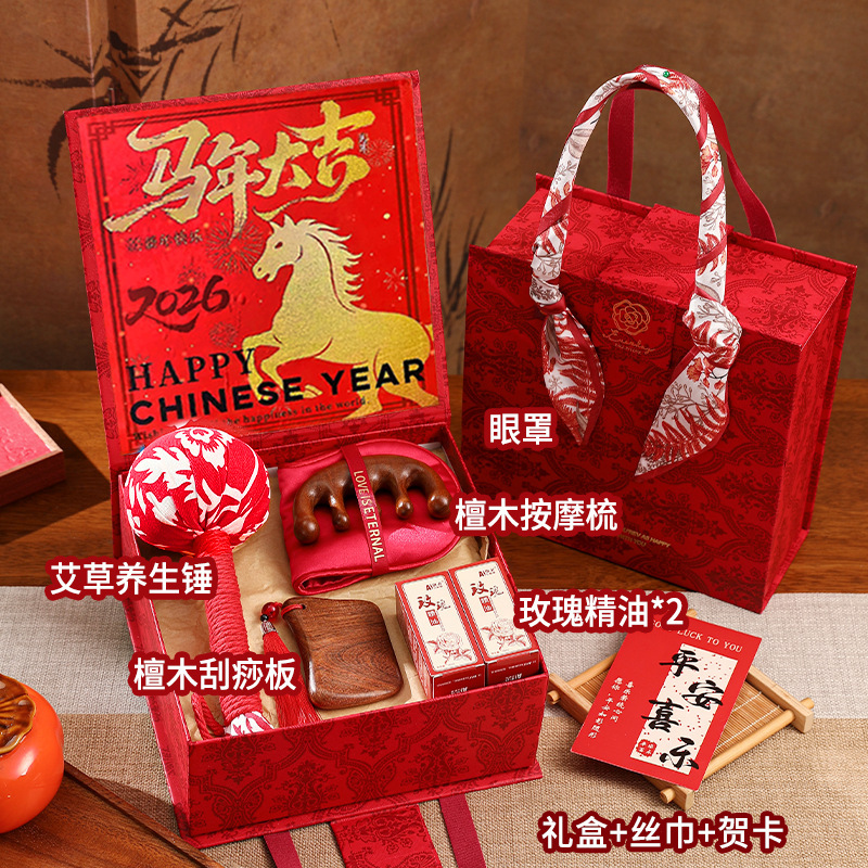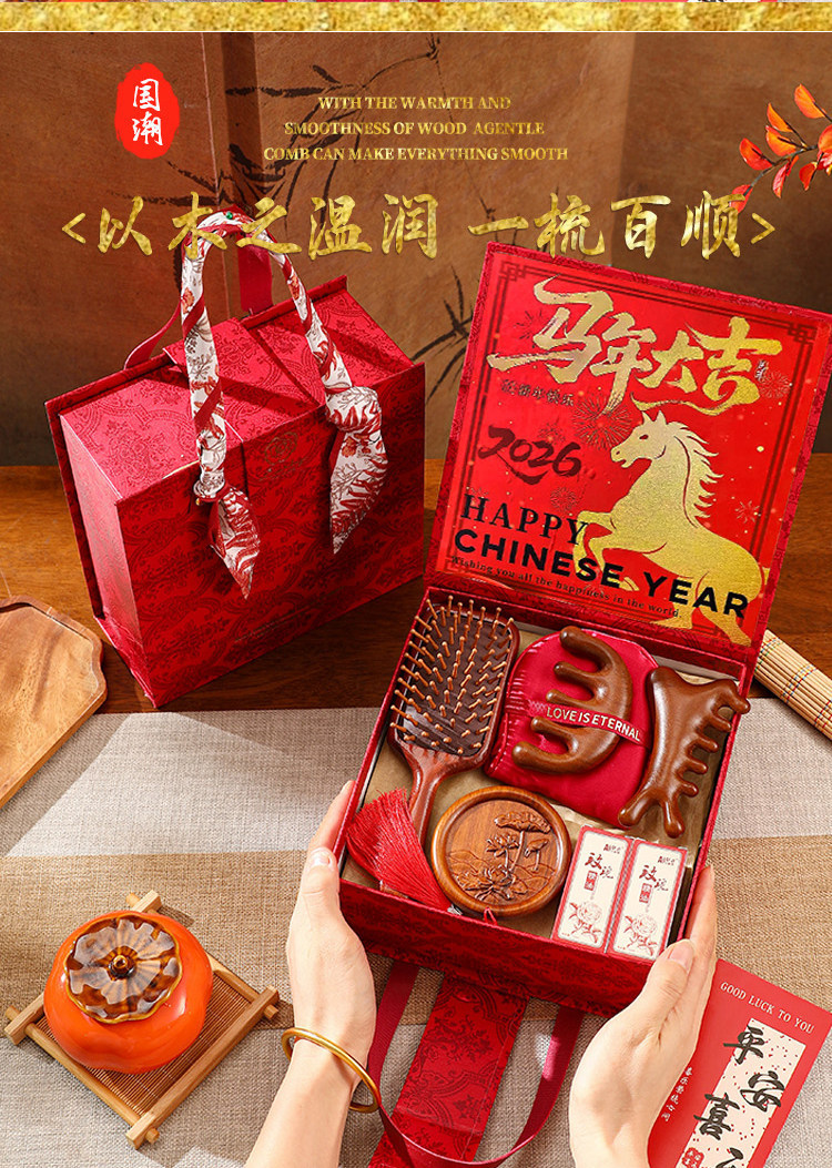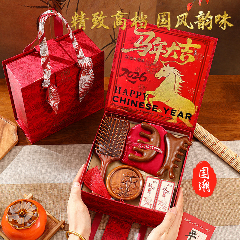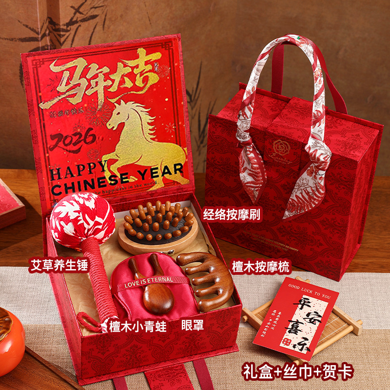年会伴手礼公司送员工客户艾草锤檀木梳2026新款马年礼物养生礼盒