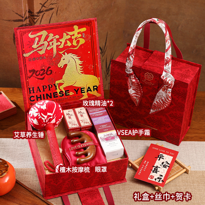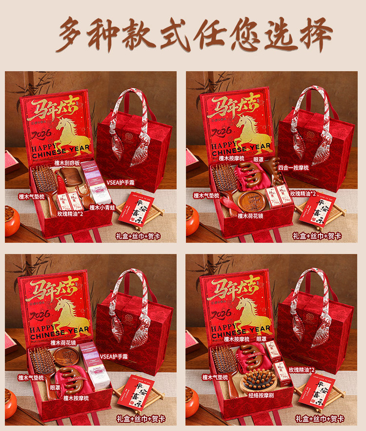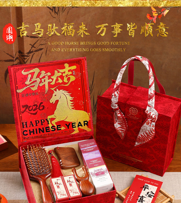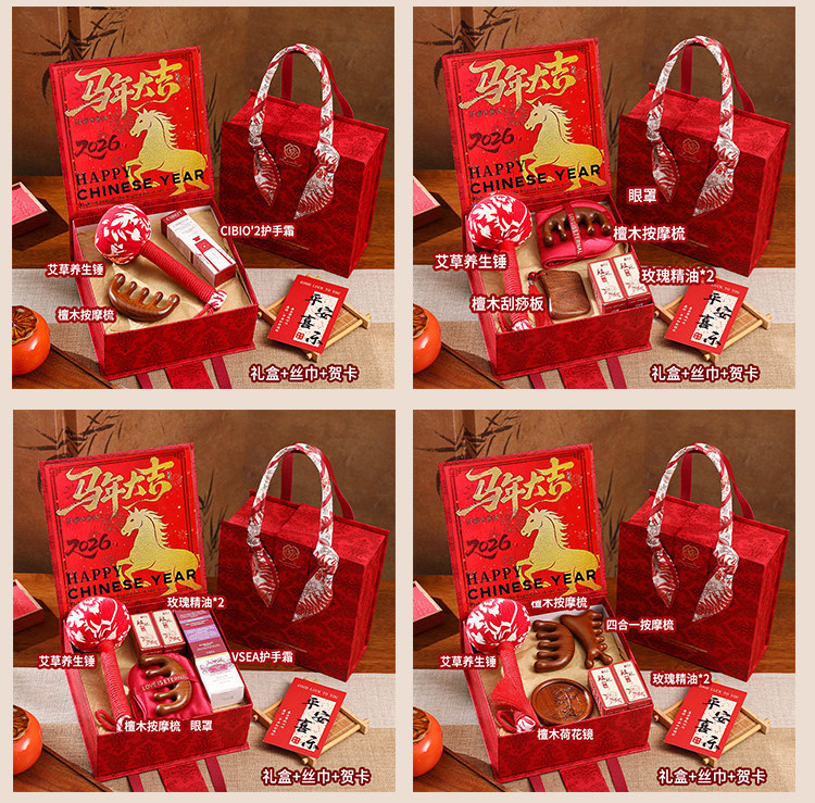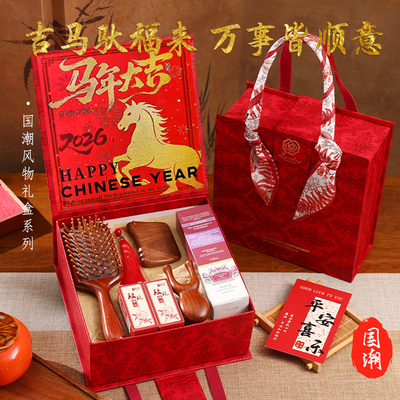 年会伴手礼公司送员工客户艾草锤檀木梳2026新款马年礼物养生礼盒