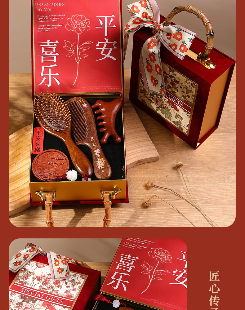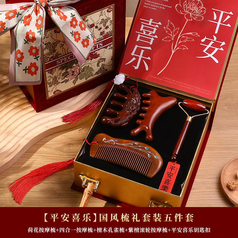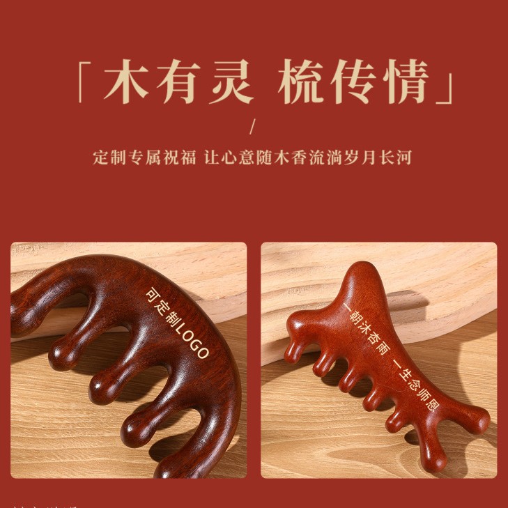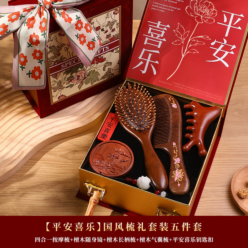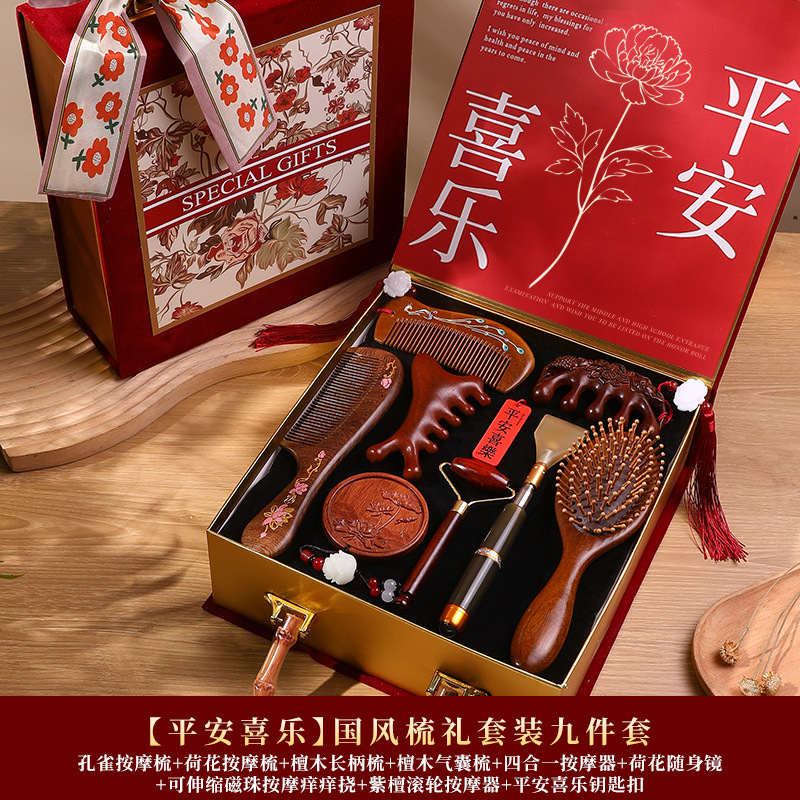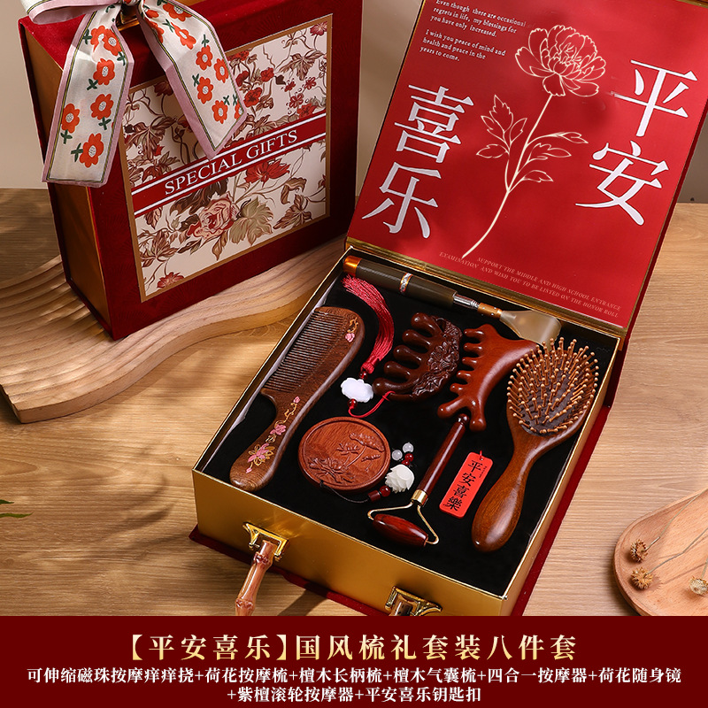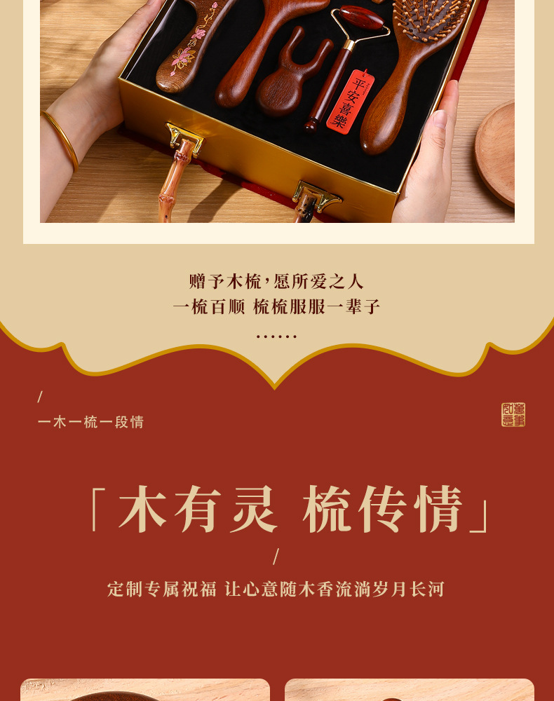 檀木梳子结婚高档礼盒送员工客户实用按摩梳年会礼品美业伴手礼品