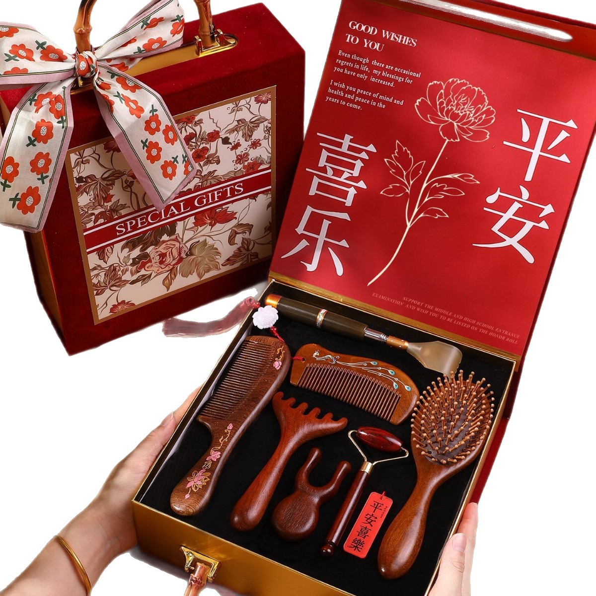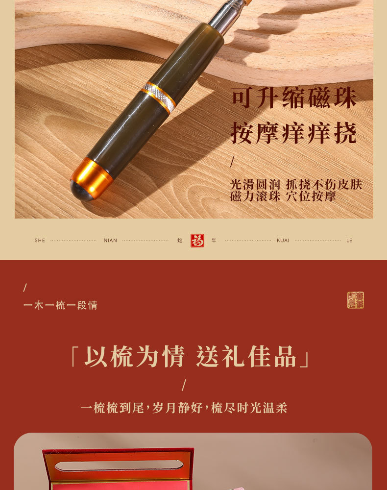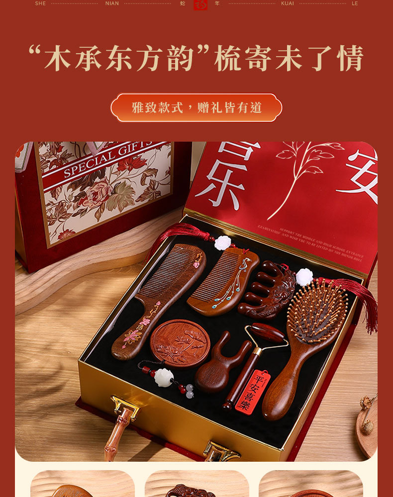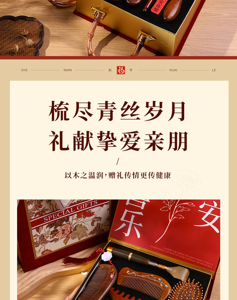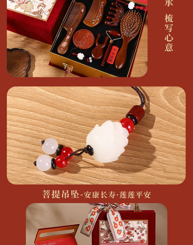 檀木梳子结婚高档礼盒送员工客户实用按摩梳年会礼品美业伴手礼品