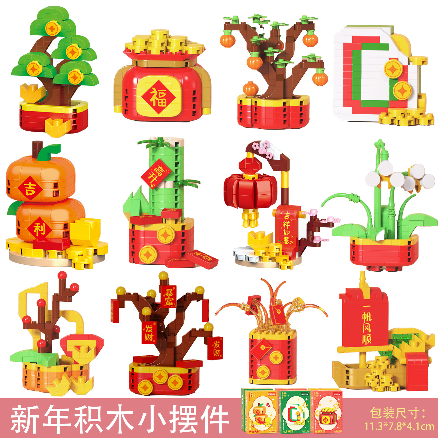 新年积木小摆件学生元旦礼物幼儿园小礼品儿童伴手礼拼装玩具奖品
