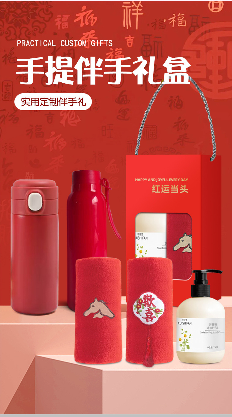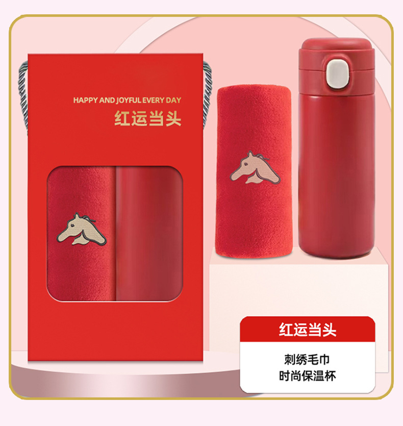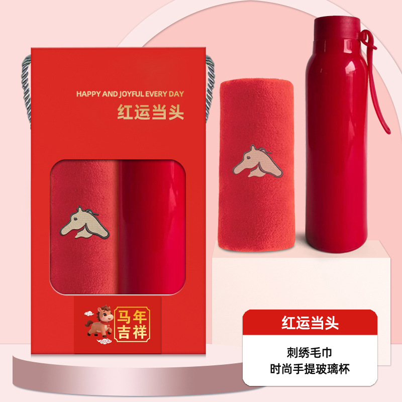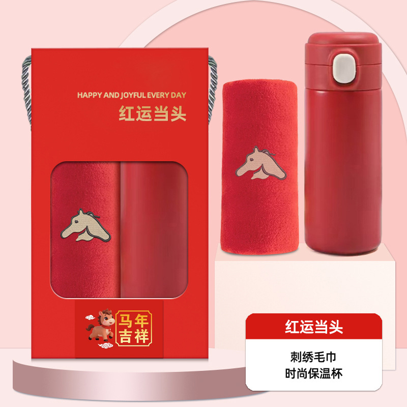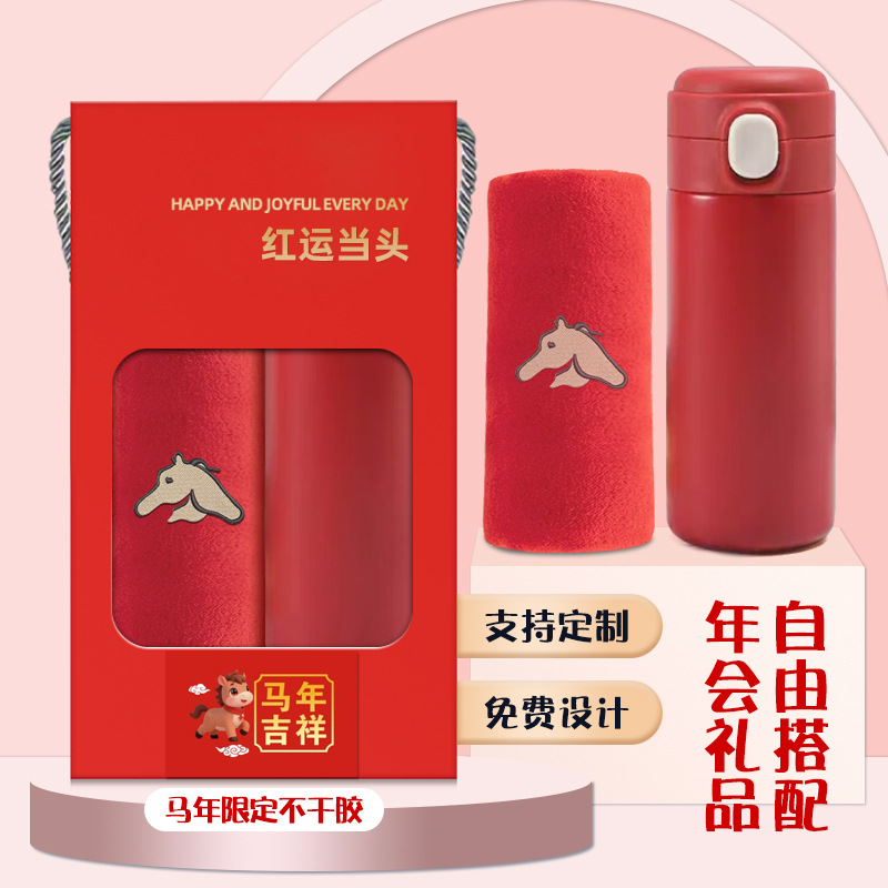 马年礼盒公司年会员工伴手礼企业商务婚庆礼品毛巾水杯套装定logo